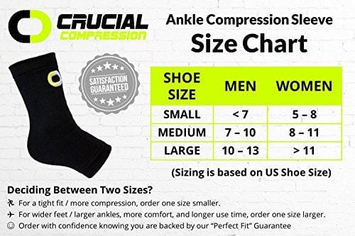 - INSTANT SUPPORT AND RELIEF - You will feel the difference immediately with the Crucial Compression Ankle Brace. Get fast pain relief with less swelling, soreness, and discomfort. Our Power Support ankle stabilizer and protector compression technology improves circulation and provides secure support in all the right places. Stop suffering through injury, arthritis, sprains, swelling, achilles tendonitis, or any other ankle pain and get back to doing what you love!