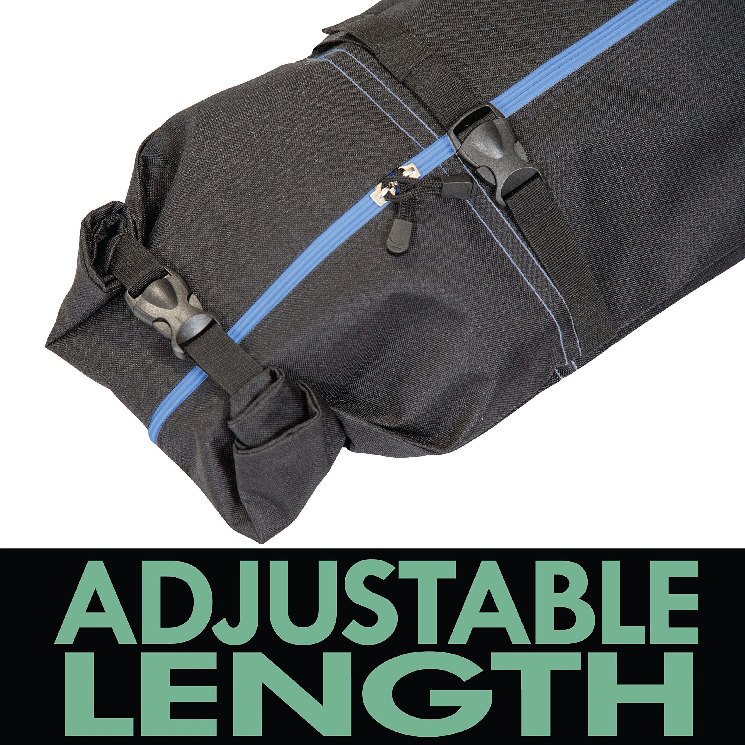 Crafted with premium water-resistant polyester, our versatile ski sleeve features a 3/4 length wrap-around zipper to easily slide your skis or other gear such as helmet, ski poles, goggles, pants, and jacket. Other features include a padded handle for easy carrying.