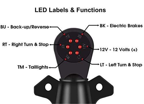 AutoSonic 7 Way Trailer Wiring Tester, 7 Pin Blade Plug with Red LED, 6 Function RV Connector Circuit Tester, Trailer Hitch Wiring Tester, RV Towing Wiring Tester, Weatherproof