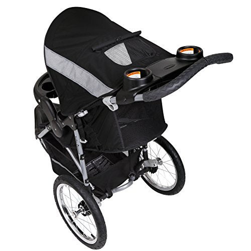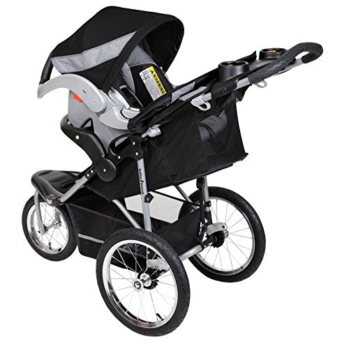 Details: Product Description The Baby Trend Expedition Travel System comes complete with the Expedition Baby Trend 3 Wheel Jogging Stroller and the Baby Trend EZ-Flex Lock 4-30 pound infant car seat with lock in car base. The stroller features a lockable front swivel wheel for jogging or allow to swivel for easy maneuverability, the wheels also feature a quick release for extra compact storage, and the wheels also feature all-terrain tires. The stroller also features both a parent tray for 2-beverages and covered storage as well as a convenient child tray, in addition to a large storage basket. The push handle is extra wide, ergonomically shaped and foam padded, and the adjustable canopy with covered sunroof ratchets to block the sun and wind. The stroller features a multi-position reclining padded seat with a fully adjustable 5-point safety harness and tether strap, and reflectors on the footrest to provide greater low light visibility. The stroller features a compact lightweight fold for easy storage, and will accommodate children up to 50 pounds and 42 inches tall. The EZ-Flec Lock 30 infant car seat accommodates weights 4-30 pounds and heights up to 30 inches tall. Features a 5-point safety harness; easy one hand harness adjustment and push button release, and 4-position push button height adjustable base with level indicator for proper installation. The EZ-Flex Lock car seat also features EPS energy-absorbing foam for superior side impact head protection, and seat pads and inserts are easily washable. The large smooth carrying handle allow for easy transport of child and seat. The EZ-Flex Lock Infant Car Seat easily removes from car seat base to allow a quick and easy click in attachment to stroller to make the Travel System. When using as a travel system you should only walk. Jogging function of the stroller, child is in the stroller seat only. Recommended use stroller: birth - 50 pounds or 42". Car seat: 4 - 30 pounds and up to 30.0". For 4 lbs, small infant insert is required. Brand Story By Baby Trend
