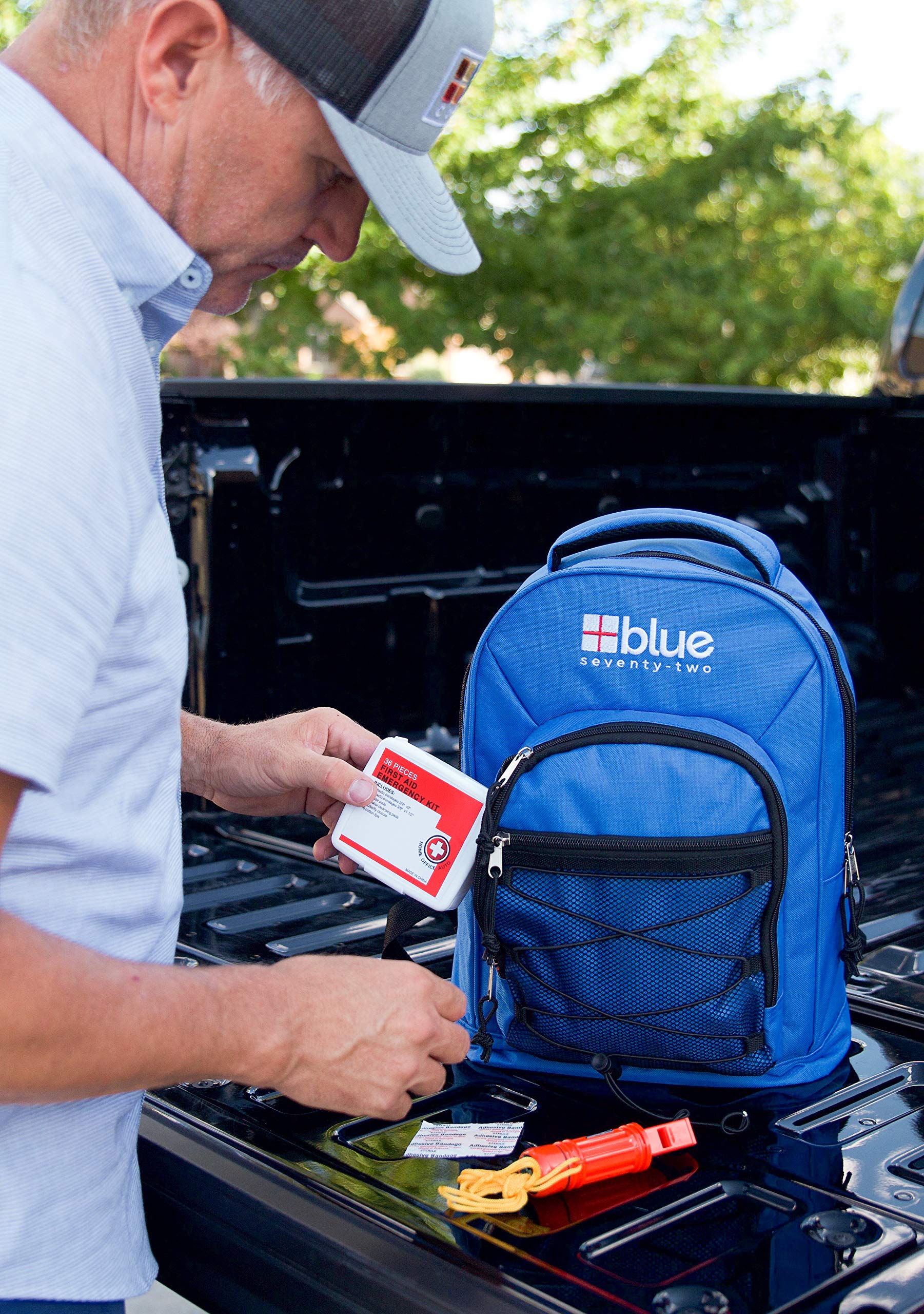 Blue Coolers Blue Seventy-Two | 72 Hour Emergency Backpack Survival Kit for 1 Person | Survival Kit for Roadside, Earthquake, Tornado, Hurricane, and Other Emergencies