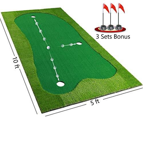 BOBURACN Golf Putting Green/Mat-Golf Training Mat- Professional Golf Practice Mat- Green Long Challenging Putter for Indoor/Outdoor (Green, 5x10ft)