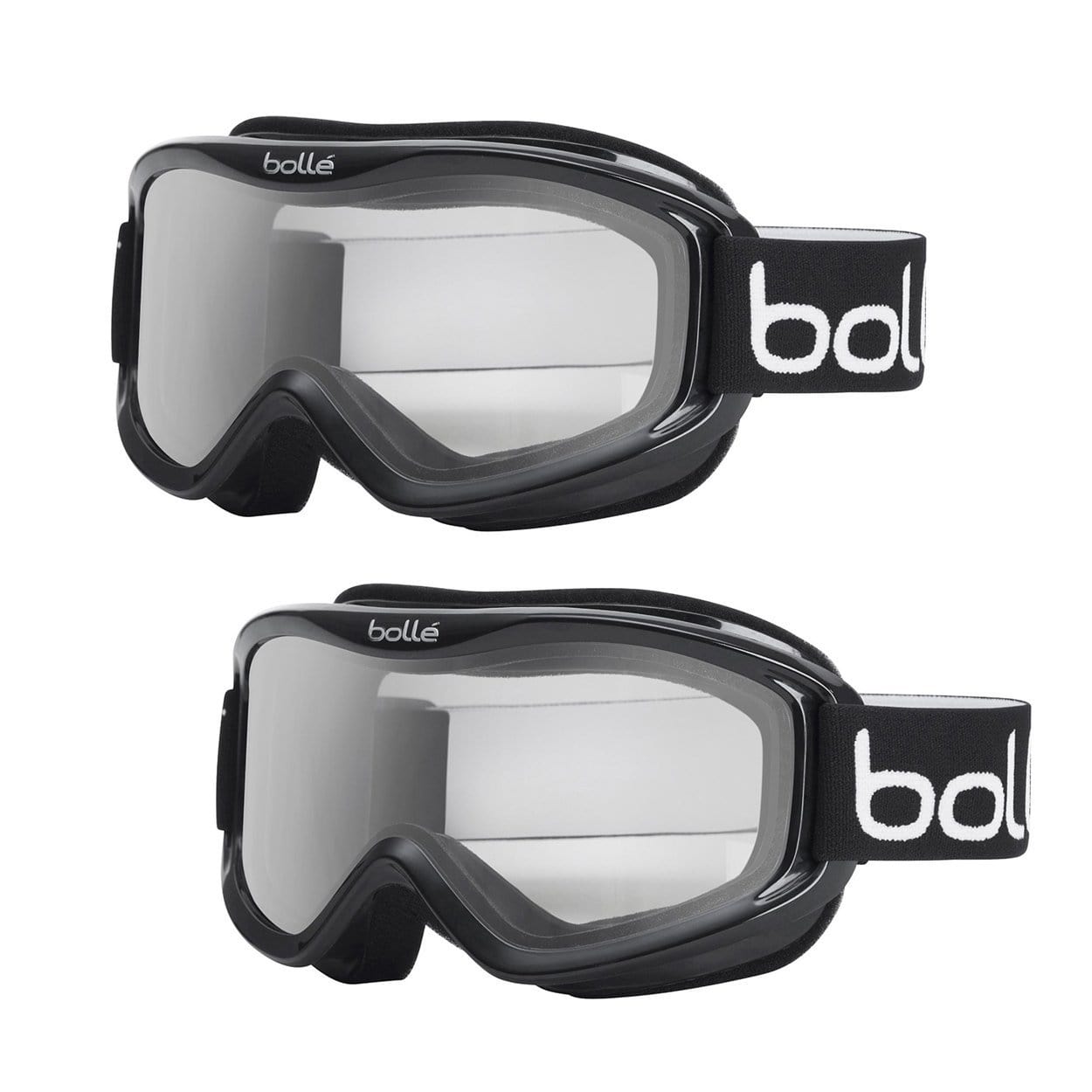 Bolle Mojo Anti-Fog Snow/Ski Goggles (Black Frame, Clear Lens, Medium to Large Adult Fit) 2-Pack