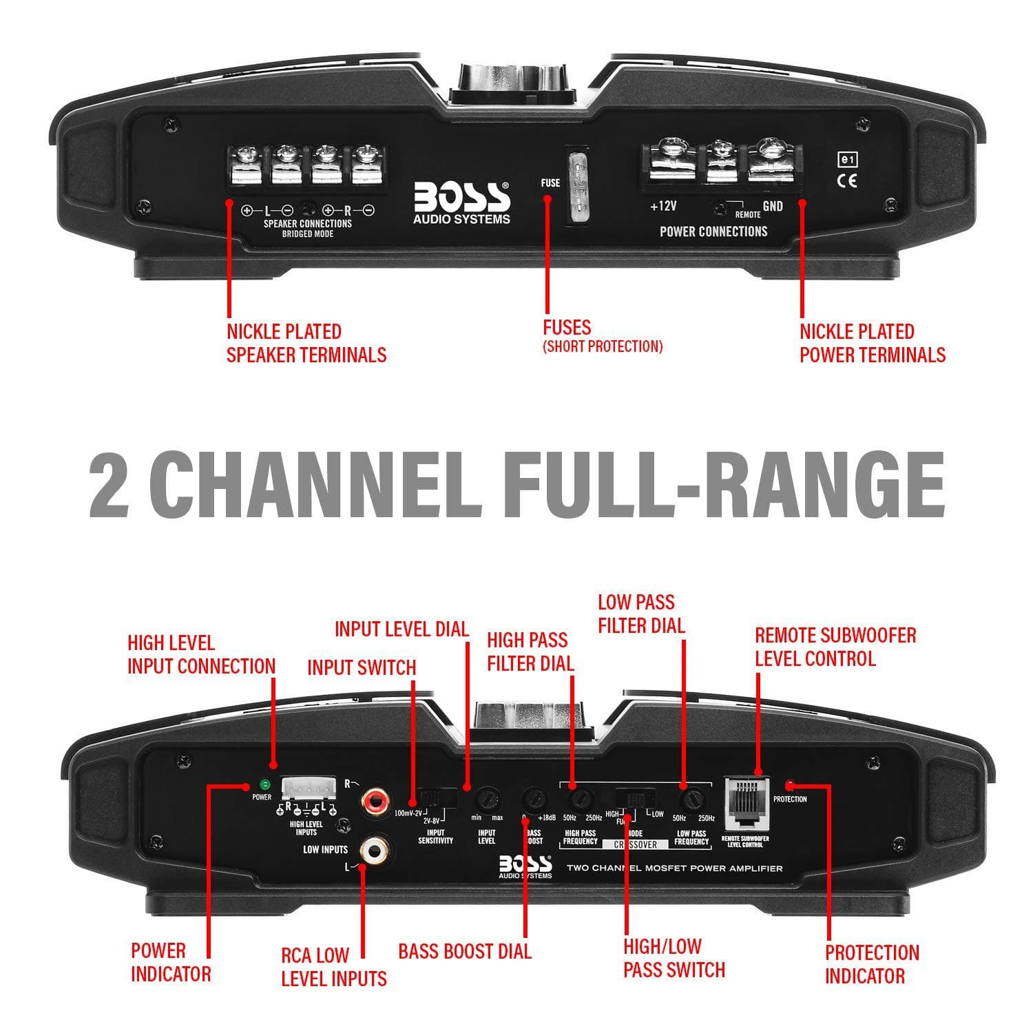 BOSS Audio PT1000 2 Channel Car Amplifier - 1000 Watts, Full Range, Class A/B, 2-8 Ohm Stable, Mosfet Power Supply, Bridgeable