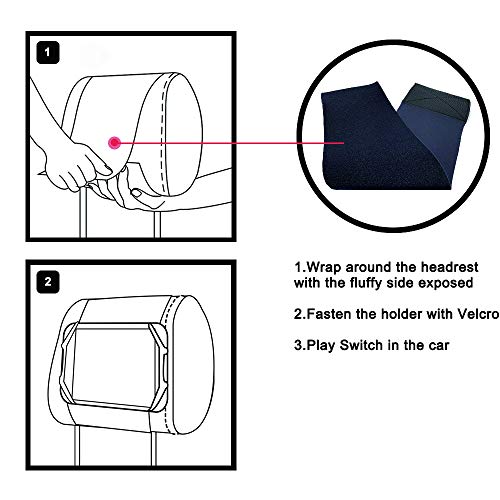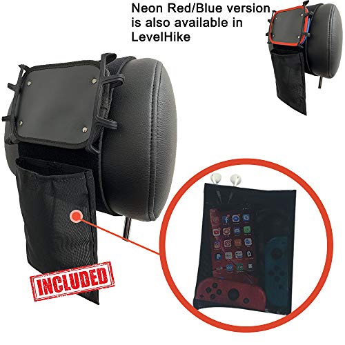 Car Headrest Mount Silicon Holder for Nintendo Switch Console, iPad Mini, Kindle Paperwhite with 3-in-1 Charging Cable (Black)