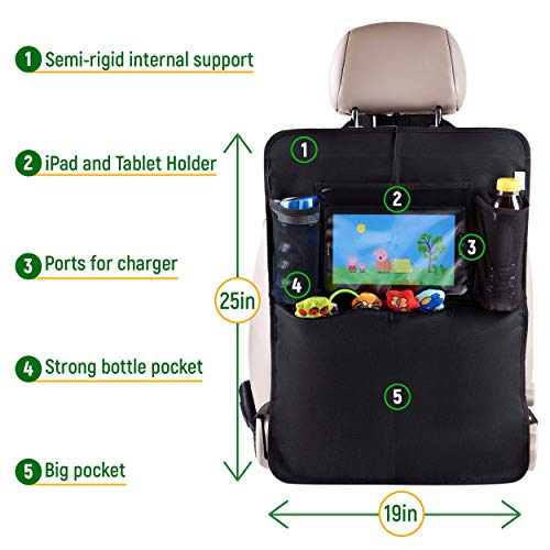 - ✅ NO MORE MESSY CAR FLOORS - The car kick mat has multiple pockets and an iPad holder, so it also functions are a backseat car organizer. In this way, your kid’s toys and water bottles will always be within easy reach and long car rides will be calmer.