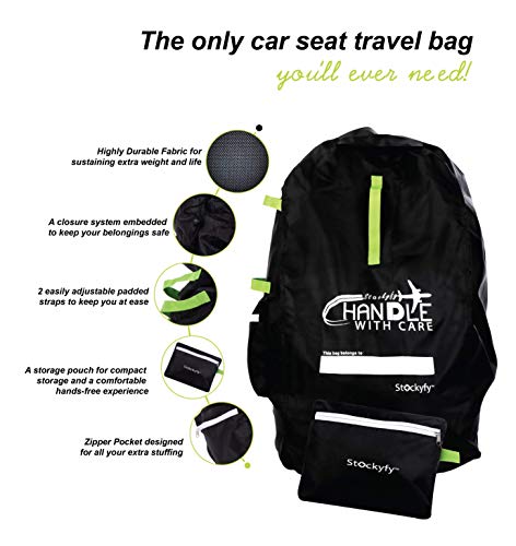 - Unlike the other car seat bags, the heavy duty black water resistant nylon/polyester material construction of stockyfy carseat carrier bag is the perfect germ protection you need in a gate check bag for car seats