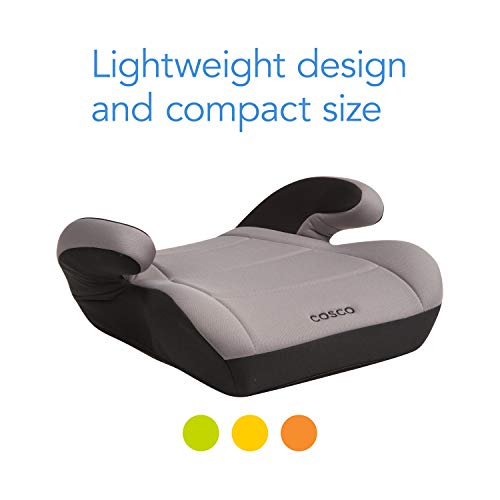 Details: Product Description When your child's ready for a booster car seat turn to the Cosco Topside Backless Booster Car Seat for your travel needs. This booster gives your child the extra height they need to keep seatbelts properly positioned. Made for growing kids, this booster seat holds kids weighing between 40 to 100 pounds and 43 to 57 inches in height. Lightweight, compact design makes this booster car seat easy to move whenever you need to change vehicles. Extra-plush padding in this backless booster seat makes long rides more comfortable. The fabric car seat cover is hand-wash only. Designed to leave your car's seats unmarked, this booster won't leave marks or indentations while in use. This booster seat includes a one-year limited warranty. For more than 70 years, Cosco has been a leading children’s products brand recognized for its dedication to safety and value. From bouncers to car seats, swings to strollers, and high chairs to play yards, Cosco's essential baby products feature solid value and smart design. Use the child restraint only on vehicle seats that face forward. Do not use on seats that face the sides or rear of the vehicle. Do not use vehicle belts in center of the door or side panel From the Manufacturer Belt-positioning booster 40-100 pounds, 43 to 57, full pad or partial pad options, lightweight design for easy traveling, packaging single of multi pack.