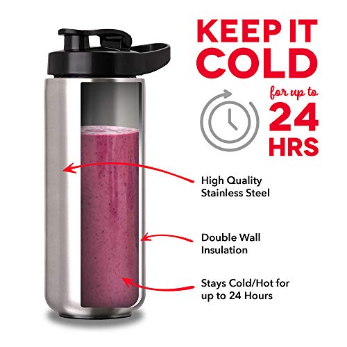 • PORTABLE + COMPACT: Easily transport your icy drinks (or hot beverages) with the travel lid attachment. The double wall insulation will keep em cold (or hot) for up to 24 hours with no condensation. Perfect for the gym, in the car, on your way to work, or any outing