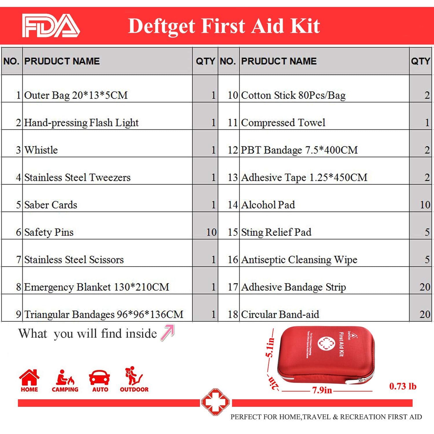 DeftGet First Aid Kit - 163 Piece Waterproof Portable Essential Injuries & Red Cross Medical Emergency Equipment Kits : for Car Kitchen Camping Travel Office Sports and Home