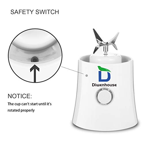 Diwenhouse Portable Blender USB Rechargeable Juicer Cup - Personal Size 16 oz Juice Glass Shakes Wireless Blue Including Metal Reusable Straws