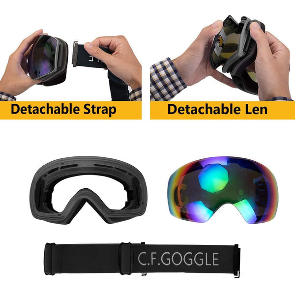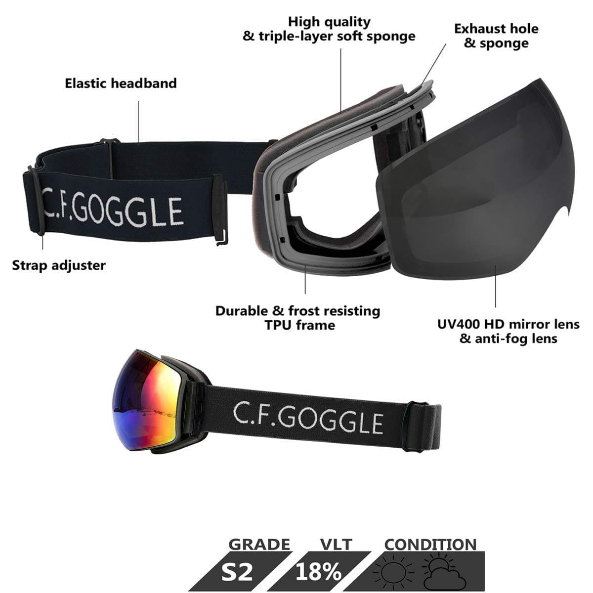 Details: Ski Goggles Snow Snowboard Goggle Over Glasses with Anti-Fog UV400 Protection Goggles Frameless Spherical Dual Interchangable Lens for Men Women Youth Skiing Snowmobile Eyewear