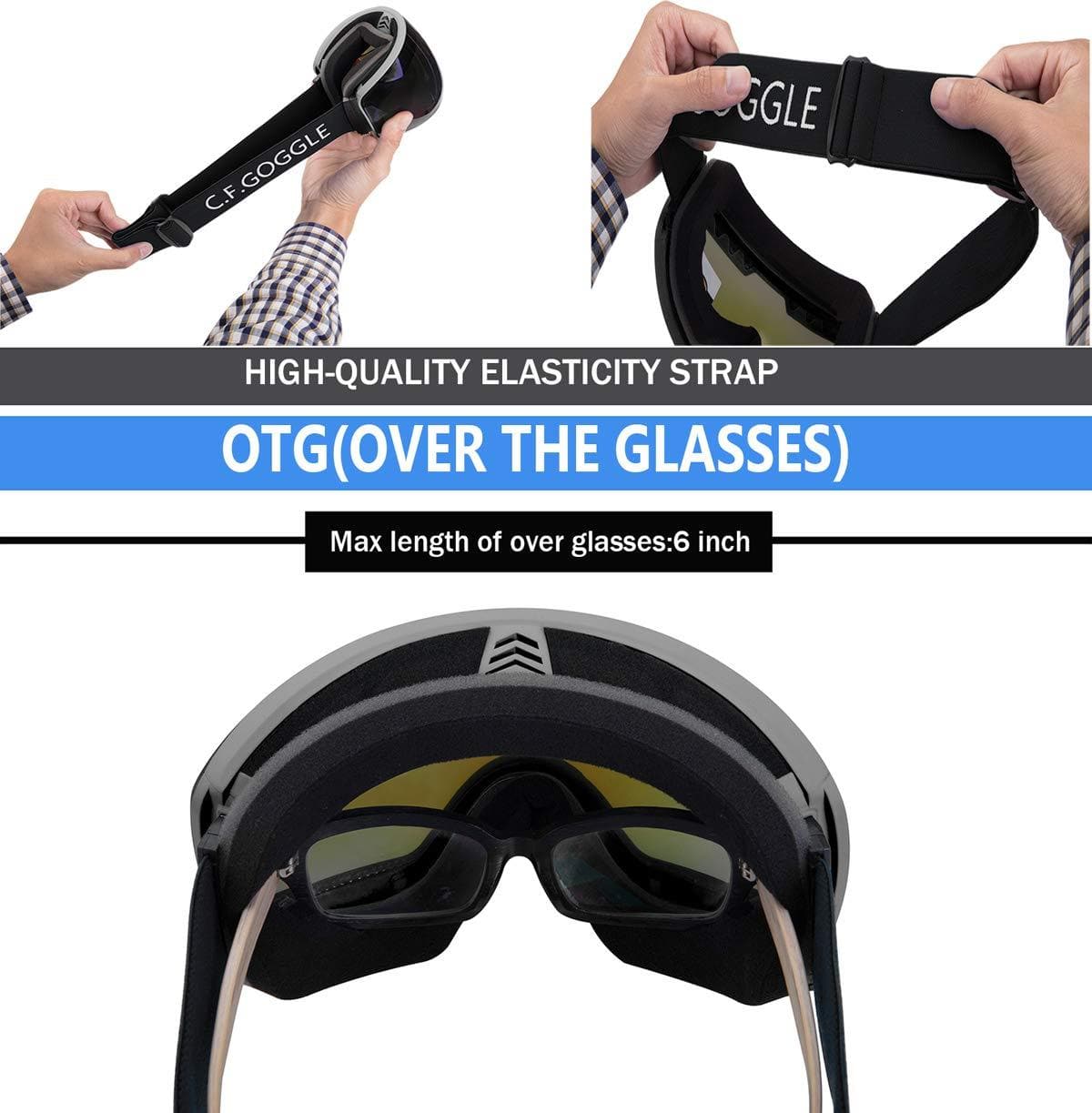 - OTG (OVER THE GLASSES) DESIGN - The Ski Goggles features an OTG design that lets you wear your glasses under the goggles. All lenses are Anti Fog Coated & offers 100% UV400 Protection.