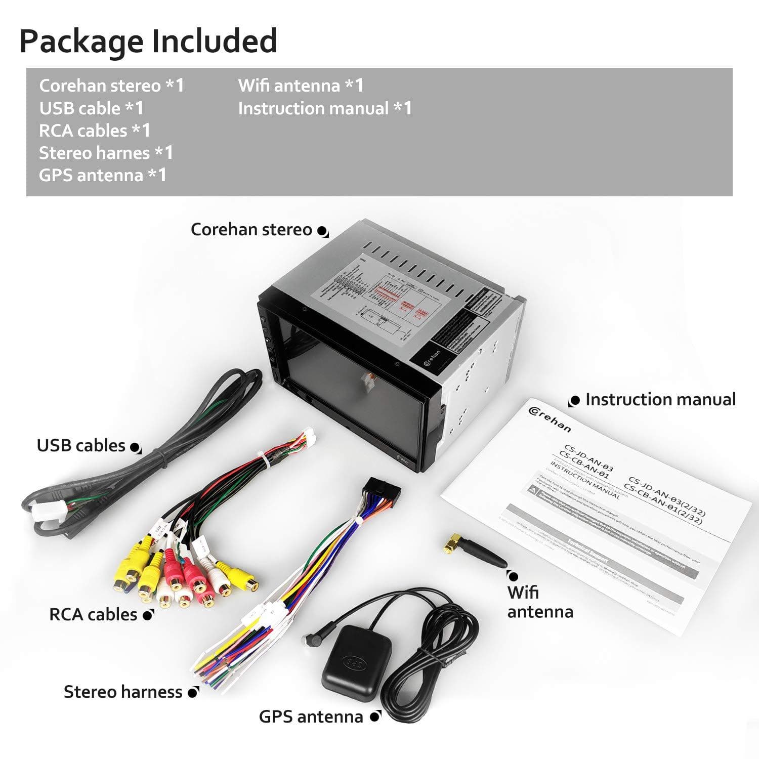 Double Din Android Car Stereo - Corehan 7 inch Touch Screen in Dash Car Radio Video Multimedia Player with Bluetooth WiFi GPS Navigation System (Android 7, 7 inch Screen)