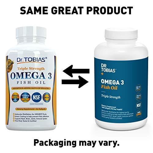 Dr Tobias Omega 3 Fish Oil Triple Strength, 2,000mg, Burpless, Non-GMO, NSF-Certified, 180 Counts