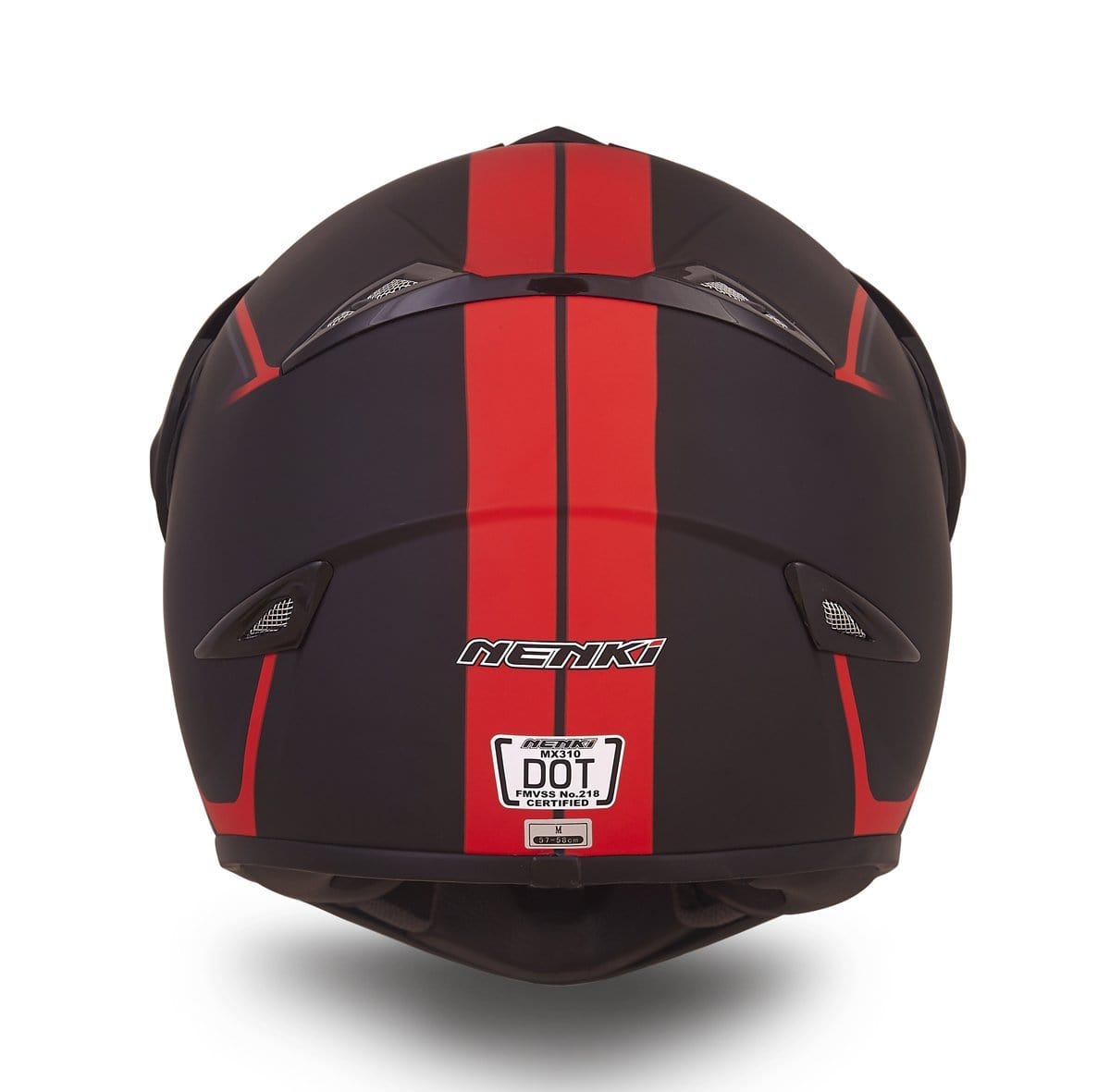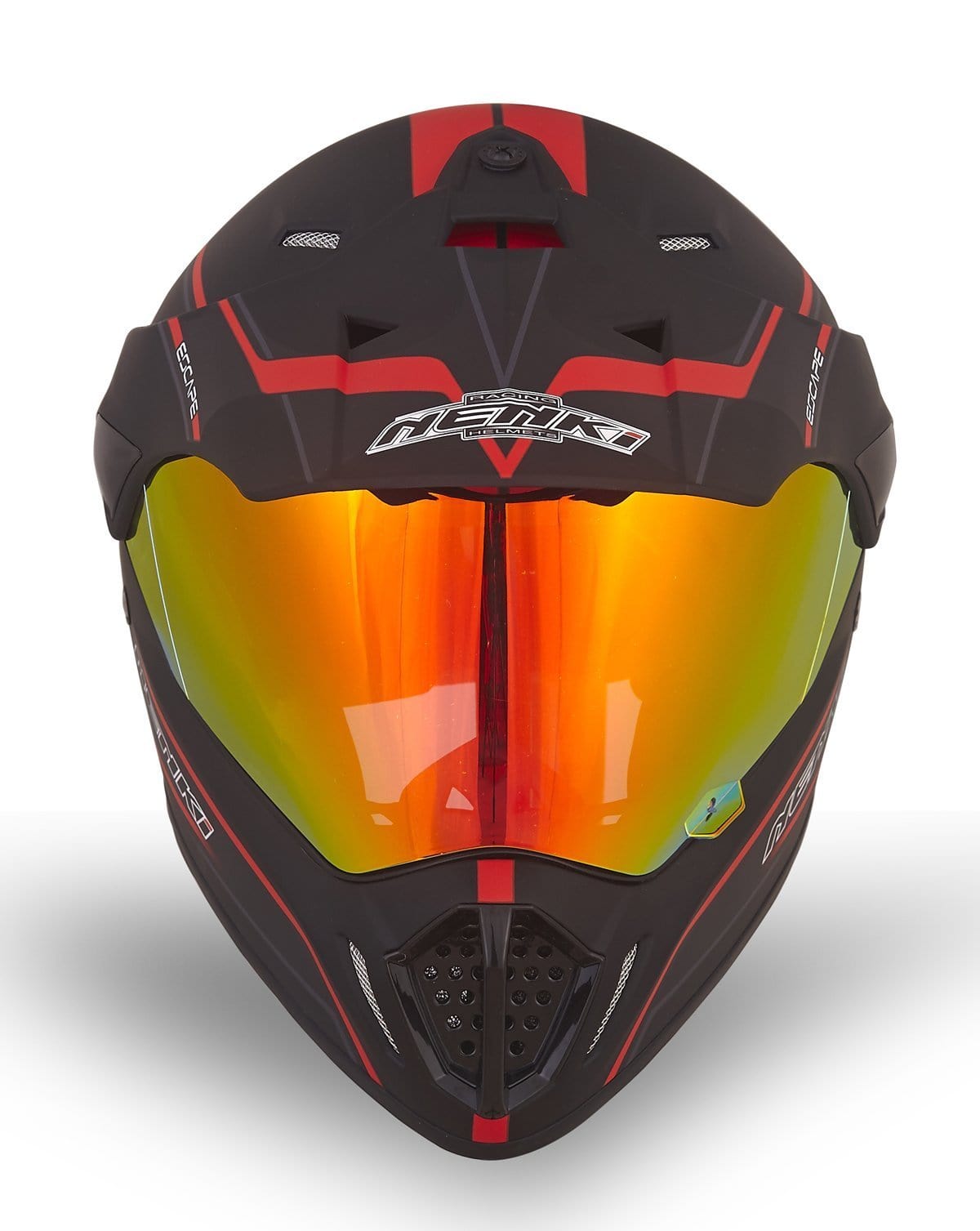 Dual Sport Helmet by NENKI Full Face Motocross & Motorcycle Helmets Dot Approved With Iridium Red Visor Attached Clear Visor NK-310 (L, Matt Black & Red)