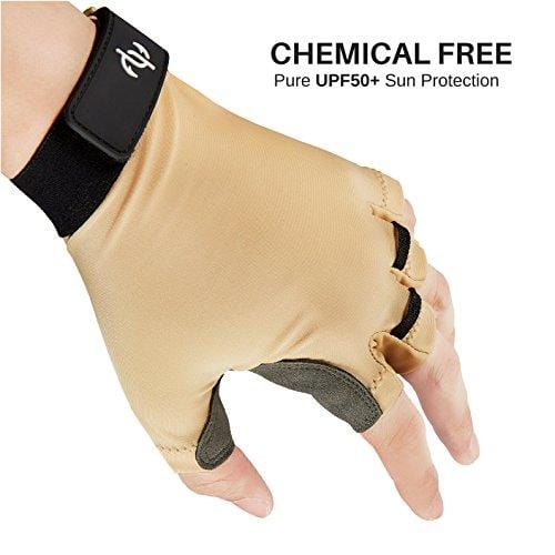- ☀️ UNISEX FINGER LESS UV kayak GLOVES TESTED and VERIFIED by global scientific testing company, SGS GROUP, as UPF and SPF 50+ UV skin sunscreen. Protection is WOVEN INTO FABRIC with NO ARTIFICIAL spray-on chemicals. UV protection factor DOES NOT WASH OFF OR WEAR OFF when glove is wet. (Available in XSmall to XLarge. Fitting guide image provided in images.)