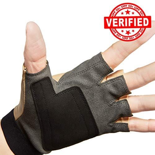 - ☀️ BLOCKS SUNBURN DAMAGE and helps protect hands from sunspots, skin toughening and aging, REDUCING THE CHANCES of PRECANCEROUS skin lesions and melanomas. Palms of faux leather and an additional layer for extra robustness AND they are light gloves outdoor accessories. The paddle gloves stop blisters, calluses and protects while rafting, canoeing, biking, running, shooting, golfing, cycling, hunting, kiteboarding and outdoor sporting activities.
