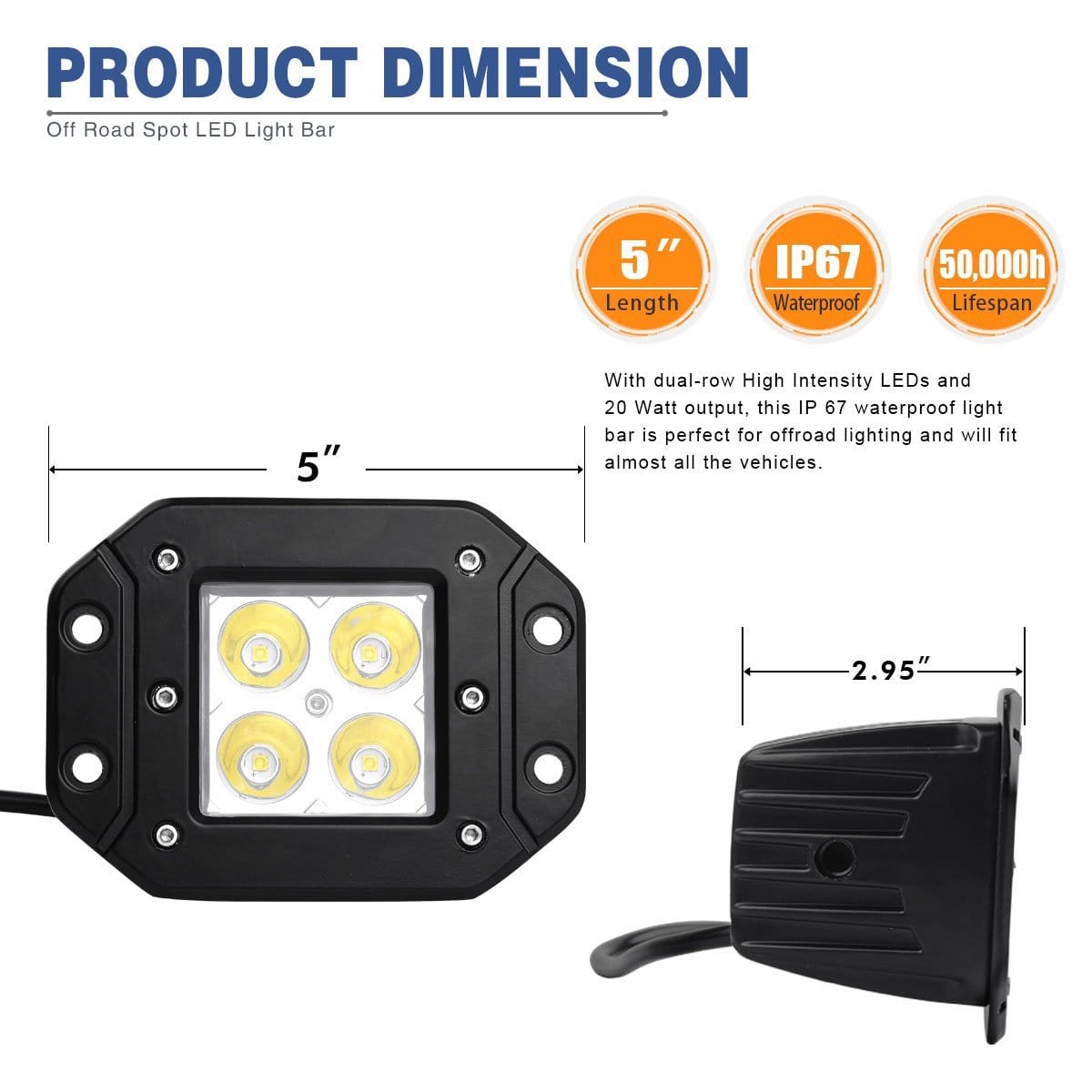 Flush Mount LED Light Bar YITAMOTOR 4Pcs 20W 4Inch Led Light Pods Spot Offroad Led Work Light Bar Driving Fog Light Boat Light Waterproof Pickup Truck Tacoma Bumper ATV UTV 12V,1 Year Warranty