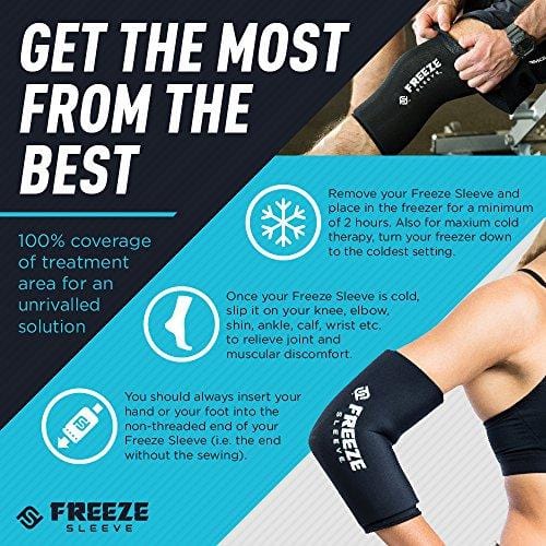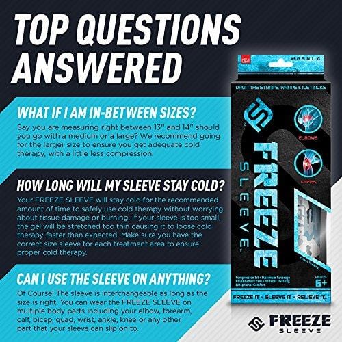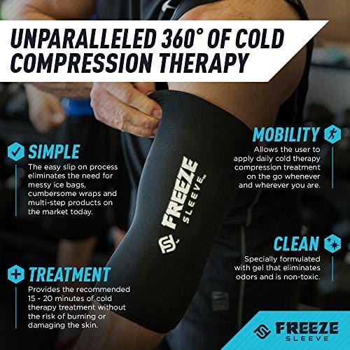 • TOTAL COMPRESSION COVERAGE: While other cold packs or straps are a pain to get on, don't stay secure and end up falling off within minutes. The Freeze Sleeve conforms to your body and provides 360 degrees of compression therapy and 100% coverage of the treatment area. Say goodbye to your ice forever!