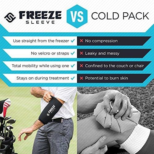 • DOCTOR RECOMMENDED: Freeze Sleeve is recommended by orthopedic surgeons, athletic trainers and physical therapists nationwide. Unlike regular ice or cold packs, the Freeze Sleeve uses specially designed material so it's wearable over bare skin without any issue.