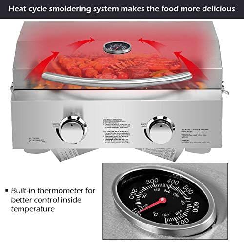 Giantex Propane Tabletop Gas Grill Stainless Steel Two-Burner BBQ, with Foldable Leg, 20000 BTU, Perfect for Camping, Picnics or Any Outdoor Use, 22" x 18" x 15", Silver