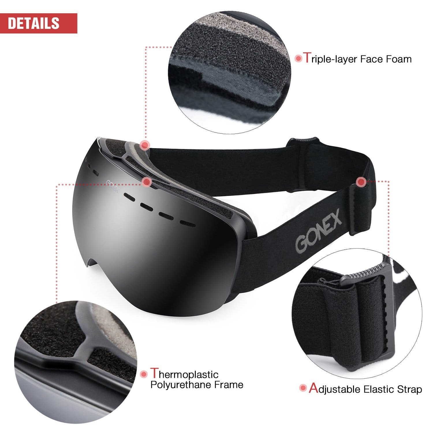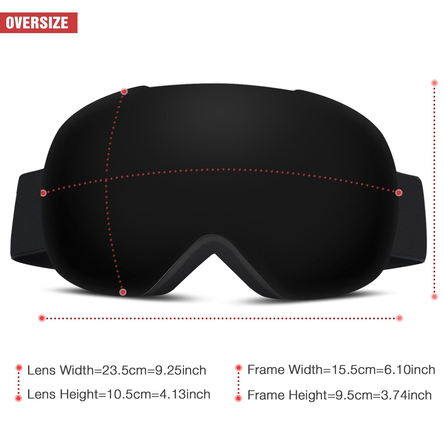 Gonex Oversized Ski Snow Goggles Anti-Fog UV Protection with Frameless Double Spherical Lens for Skiing Snowboard Skate Winter Sports+ Goggle Case(Black Lens)
