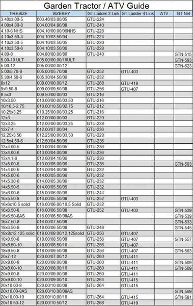 Grizzlar GTU-236 Garden Tractor Snowblower 2 Link Ladder Alloy Tire Chains 12.5x4.50-6 12x7-4 13x4.1-6 13x4.00-5 13x4.00-6 13x5.00-6 4.10-6NHS 4.10/3.50-6 4.10-6