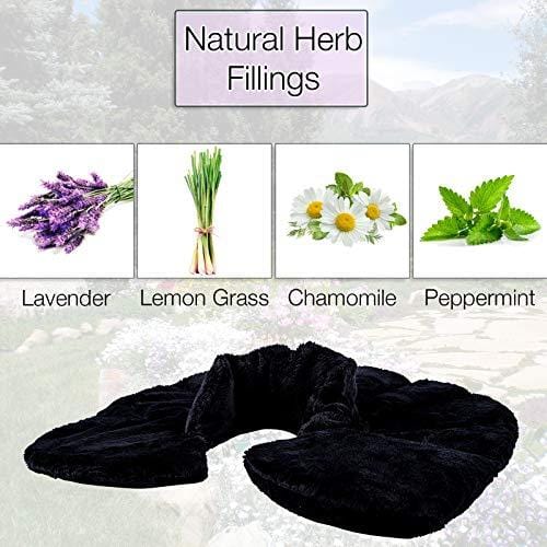 - HERBAL GOODNESS: Filled with 100% natural herbs, this heated neck wrap soothes with a subtle whiff of lavender, chamomile, peppermint, and lemongrass. Just warm it in the microwave and serenade your senses with herbal aromatherapy as you relax your muscles with moist heat. Ingredients List: Premium Flax Seed & Wheat, Lavender, Chamomile, Peppermint, Spearmint, Lemon Grass, Rosemary, Cinnamon, Yarrow, White Willow, Valerian Root, Yellow Dock, Hops, & other natural ingredients.