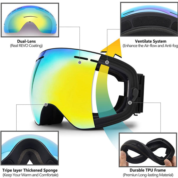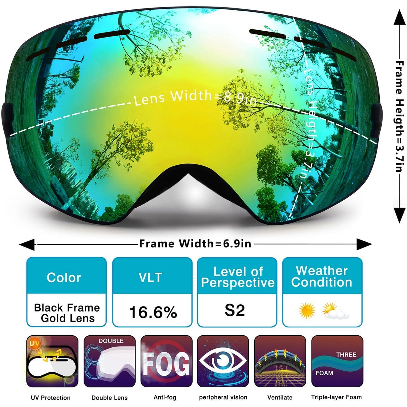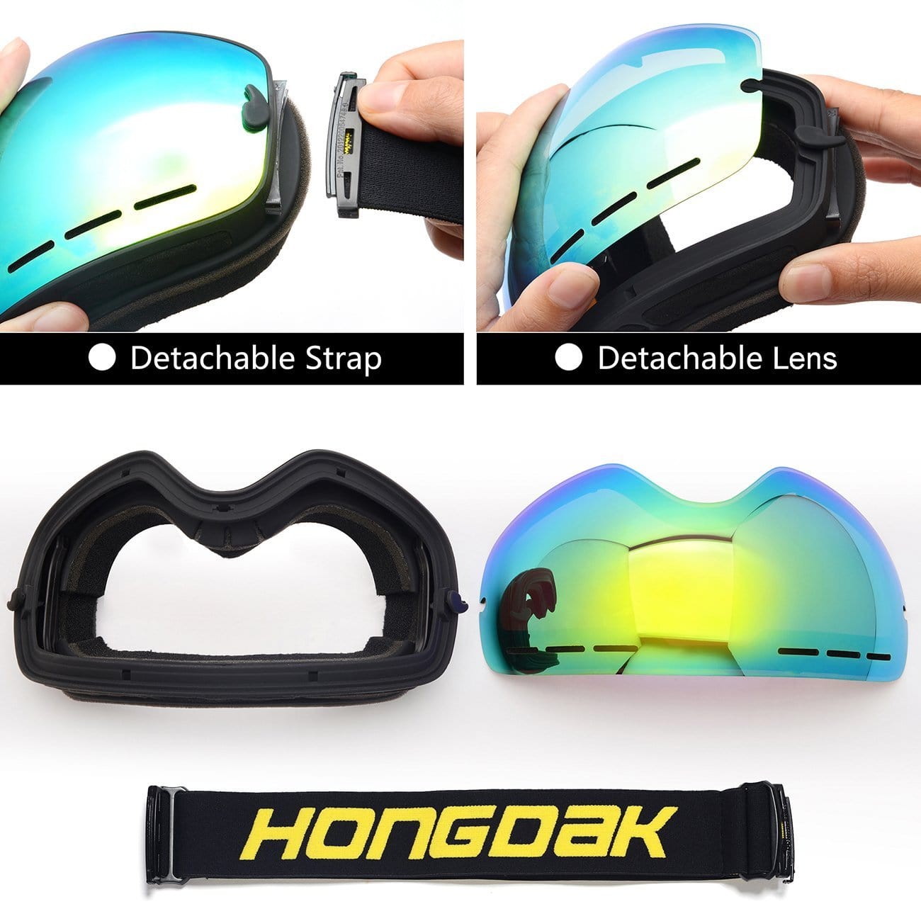HONGDAK Ski Goggles, Snowboard Goggles UV Protection, Snow Goggles Helmet Compatible for Men Women Boys Girls Kids, Anti