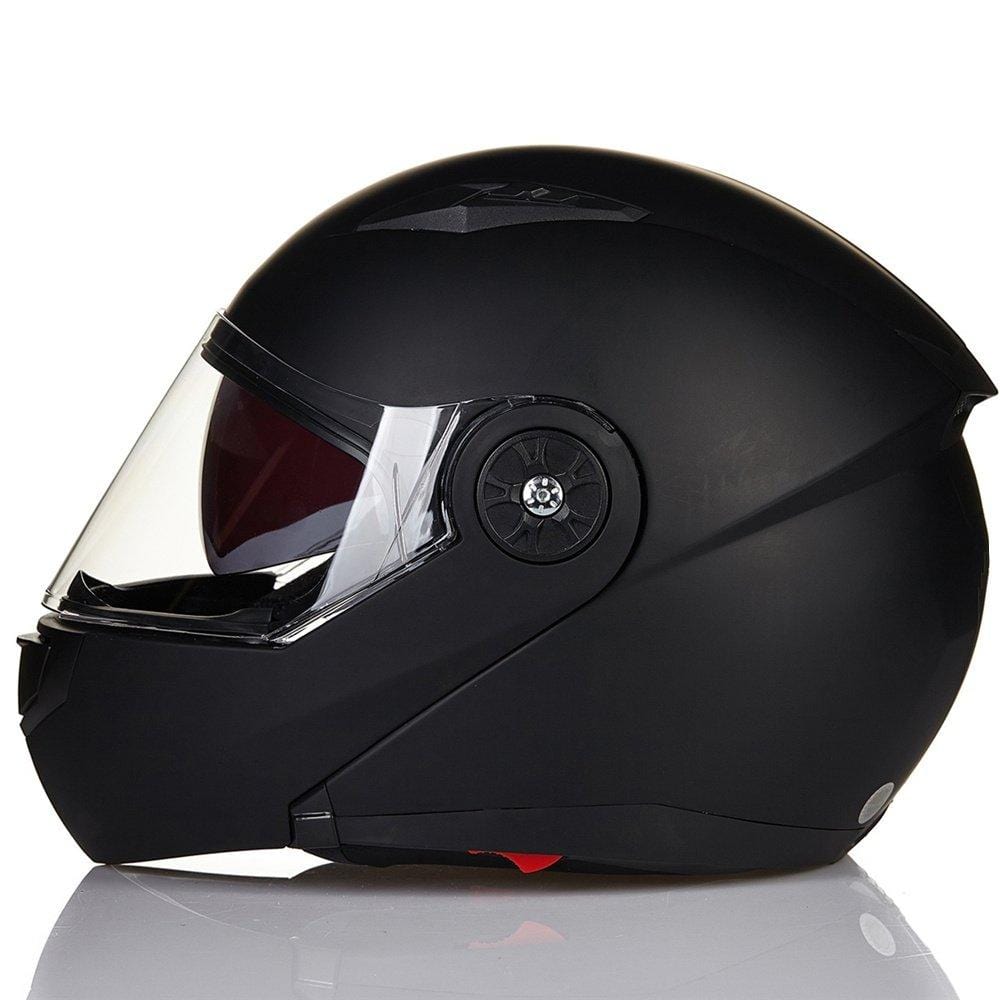 ILM 8 Colors Motorcycle Modular Flip up Dual Visor Helmet DOT (L, Matte Black)