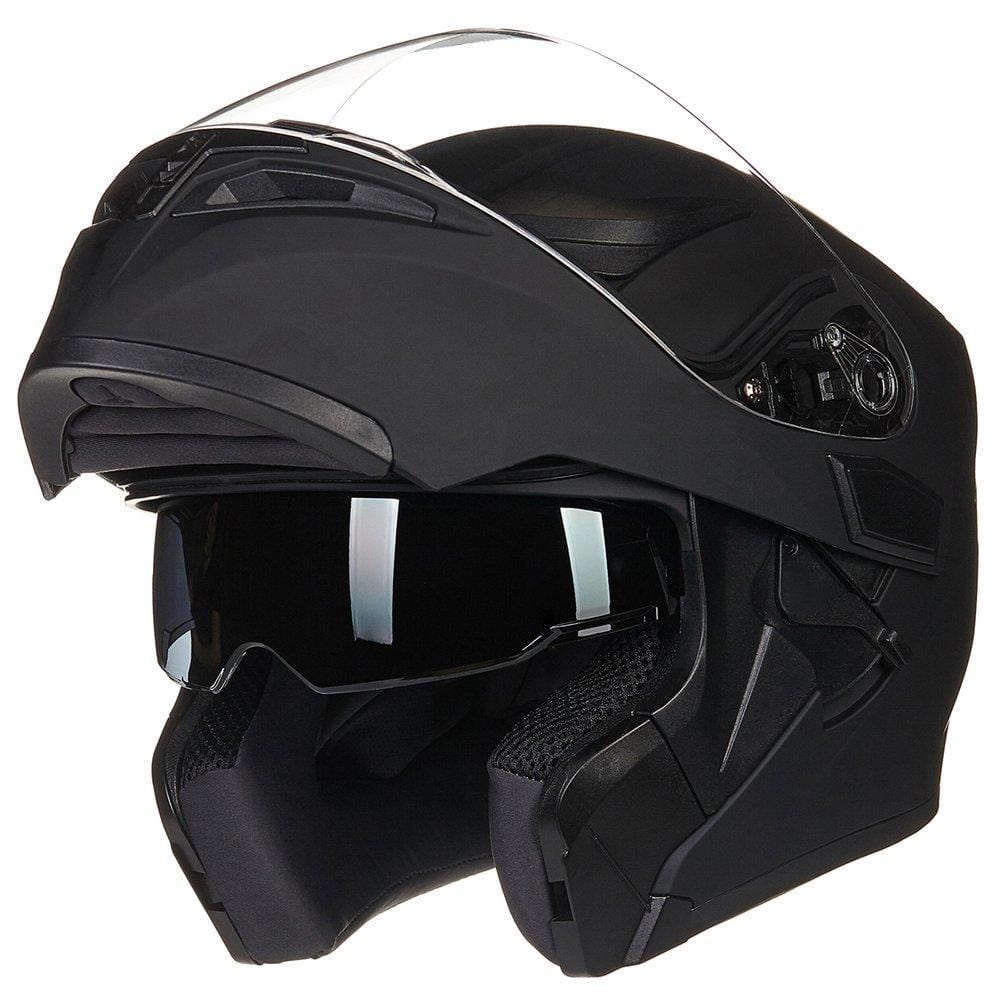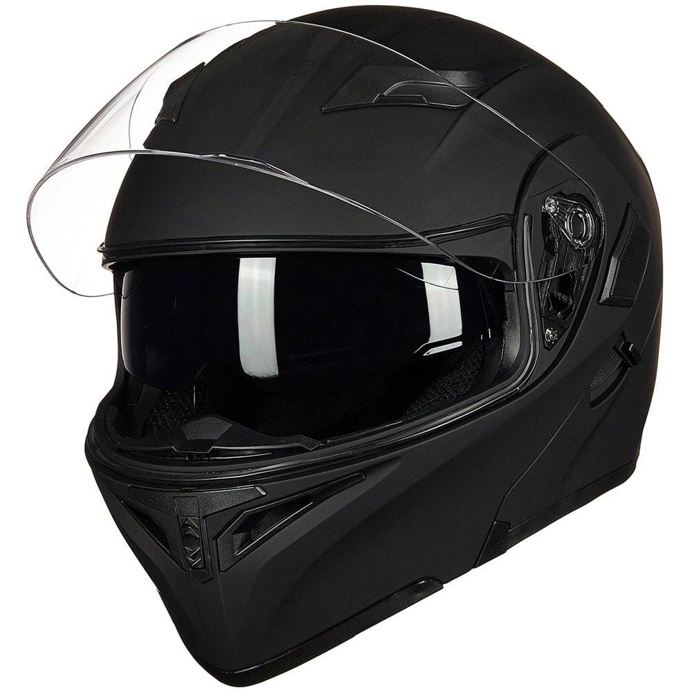 ILM Motorcycle Dual Visor Flip up Modular Full Face Helmet DOT 6 Colors (L, MATTE BLACK)