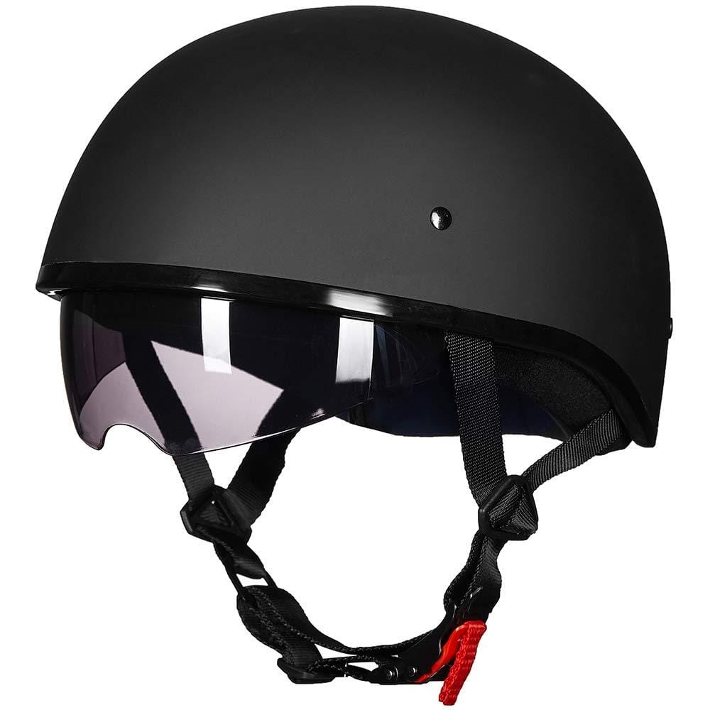 ILM Motorcycle half Helmet with Sunshield Quick Release Strap Half Face Fit for Bike Cruiser Scooter Harley DOT Approved (L, Matte Black)