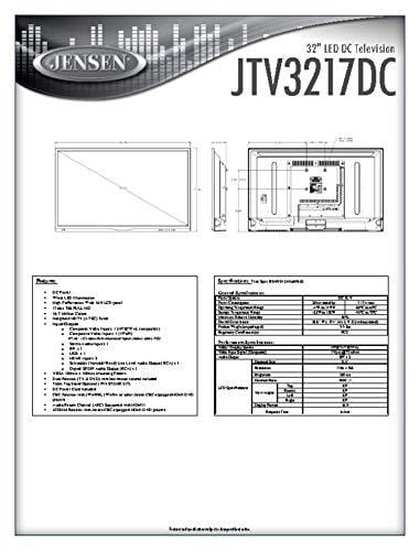 Jensen JTV3217DC LED 32" DC HDTV Television; DC 12V Power; Integrated HDTV ATSC Tuner; HD Ready 1080p, 720p, 480p; JCOM for JENSEN HDMI-Equipped DVD Player; Replaced JE3212LED