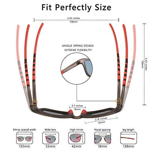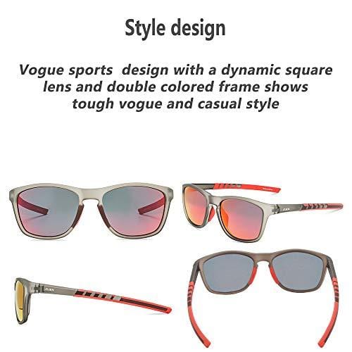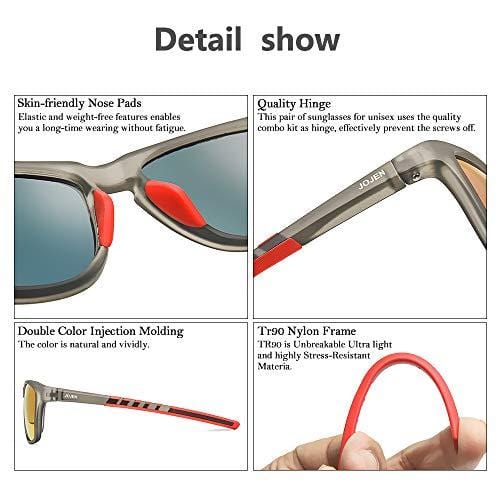 JOJEN Polarized Sports Sunglasses for Men Women Baseball Running Cycling Fishing Golf Tr90 Ultralight Frame JE001(Grey Frame Red Revo Lens)