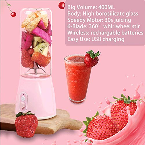Mini and Portable, Personal Blender, Glass Juicer Cup, Big Volume 400ML, USB Charging, Cordless Battery Rechargable, 20~30s Speedy Juicing