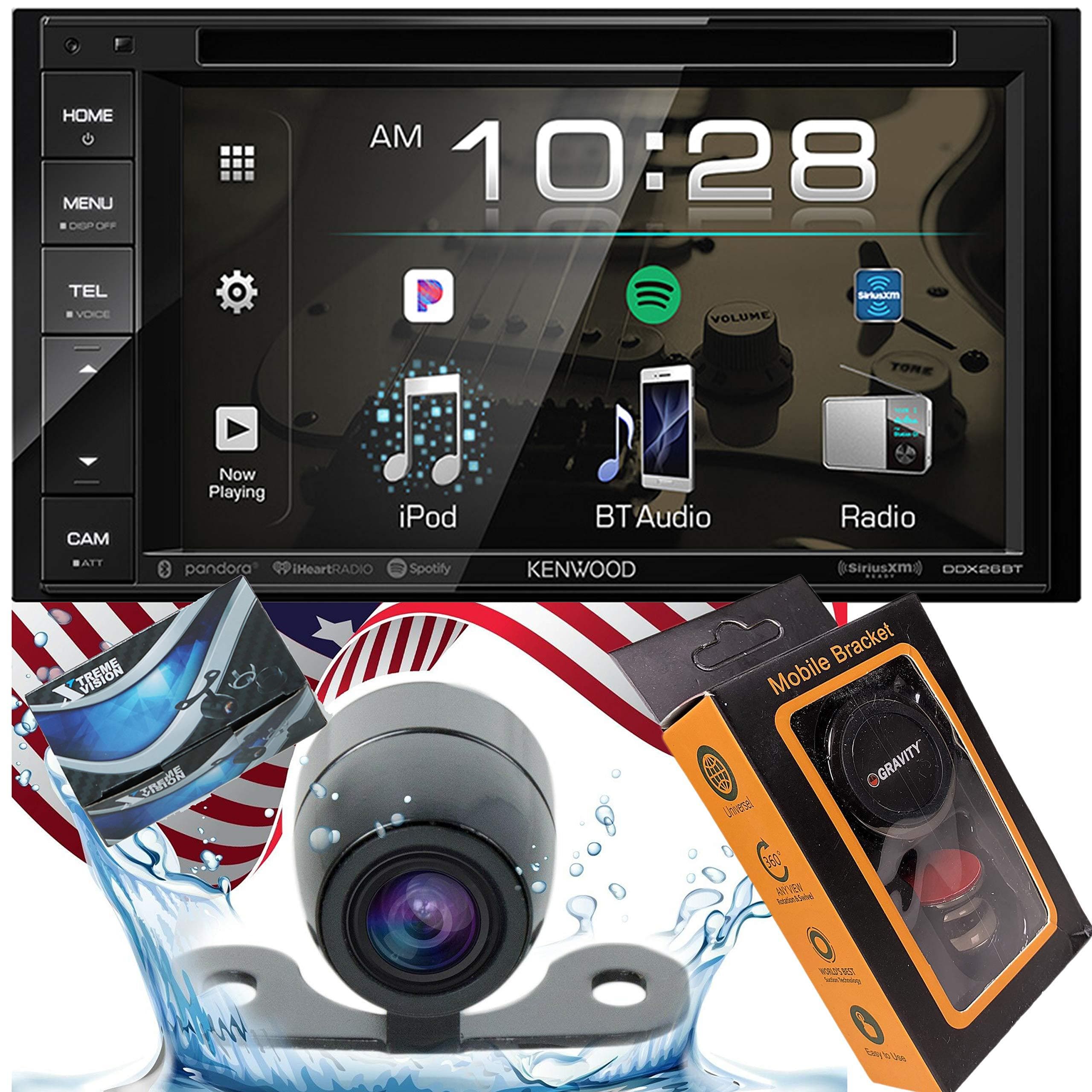 Kenwood DDX26BT Double DIN SiriusXM Ready Bluetooth in-Dash DVD/CD/AM/FM Car Stereo Receiver w/ 6.2" Touchscreen + XV20C Backup Camera + Gravity Magnet Phone Holder