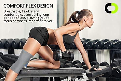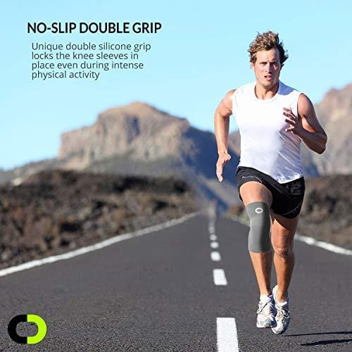 • "NO-SLIP" DOUBLE GRIP - Stopping to pull your knee sleeves back up is frustrating to say the least. With our unique Double Silicone Grip your sleeves stay in place without sliding down no matter what you're doing. And they don't bunch up behind your knees, so you can even wear them underneath your clothing. Now you're finally free to enjoy your favorite activity uninterrupted.