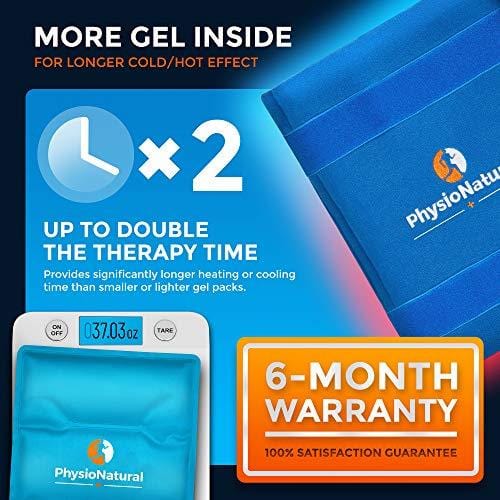• MINIMIZE INJURIES, INFLAMMATION AND RELIEVE PAIN - Don't let the pain control your life. Whether you are a fitness enthusiast, working out for fun, or just doing any physical activity such as running or bicycle riding, PhysioNatural is just what you need to maintain a PAIN FREE LIFESTYLE with MAXIMUM FLEXIBILITY AND RANGE OF MOTION. What sets PhysioNatural apart is the increased amount of gel in the pack, which retains both hot and cold temperatures for much longer.