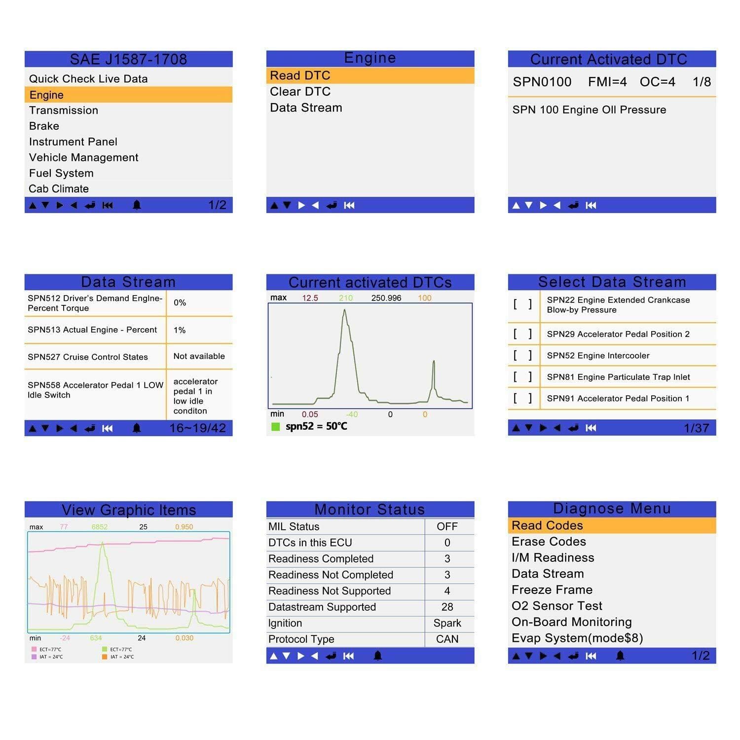 LAUNCH CReader HD Plus Heavy Duty Truck Obd2 Diagnostic Reader OBDII Scan Tool CRHD Truck Code Scanner With OBD-II Communication Modes 1-10 and J1587, J1708 and J1939 protocols