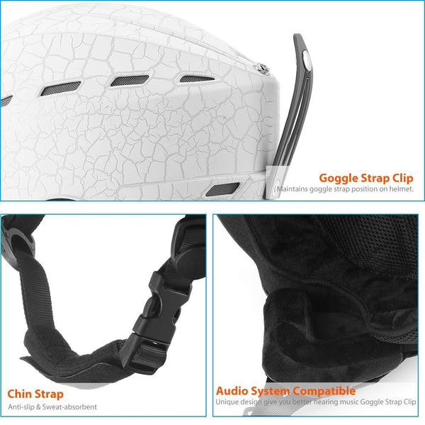Ledivo Ski Helmet,Snowboard Helmet - Adjustable Venting, Goggles and Audio Compatible, Removable Liner and Ear Pads, Safety-Certified Snow Sports Helmet for Men, Women & Youth (White, Large)