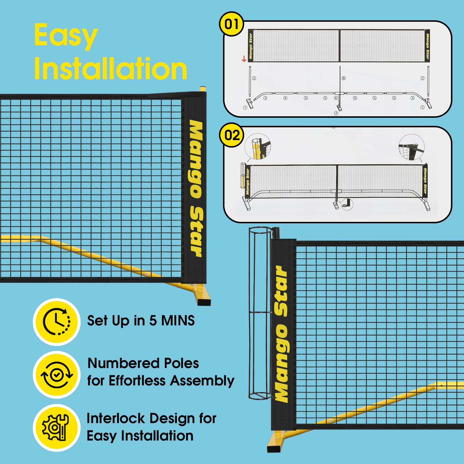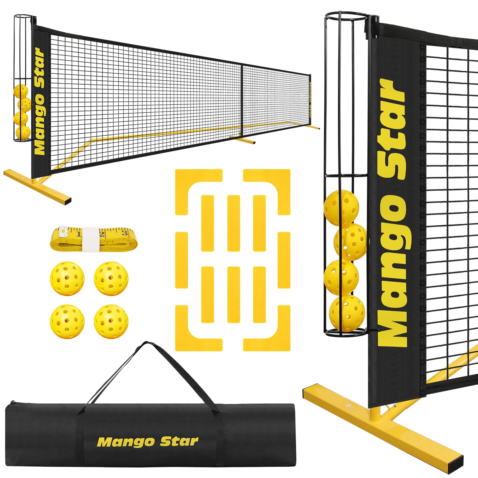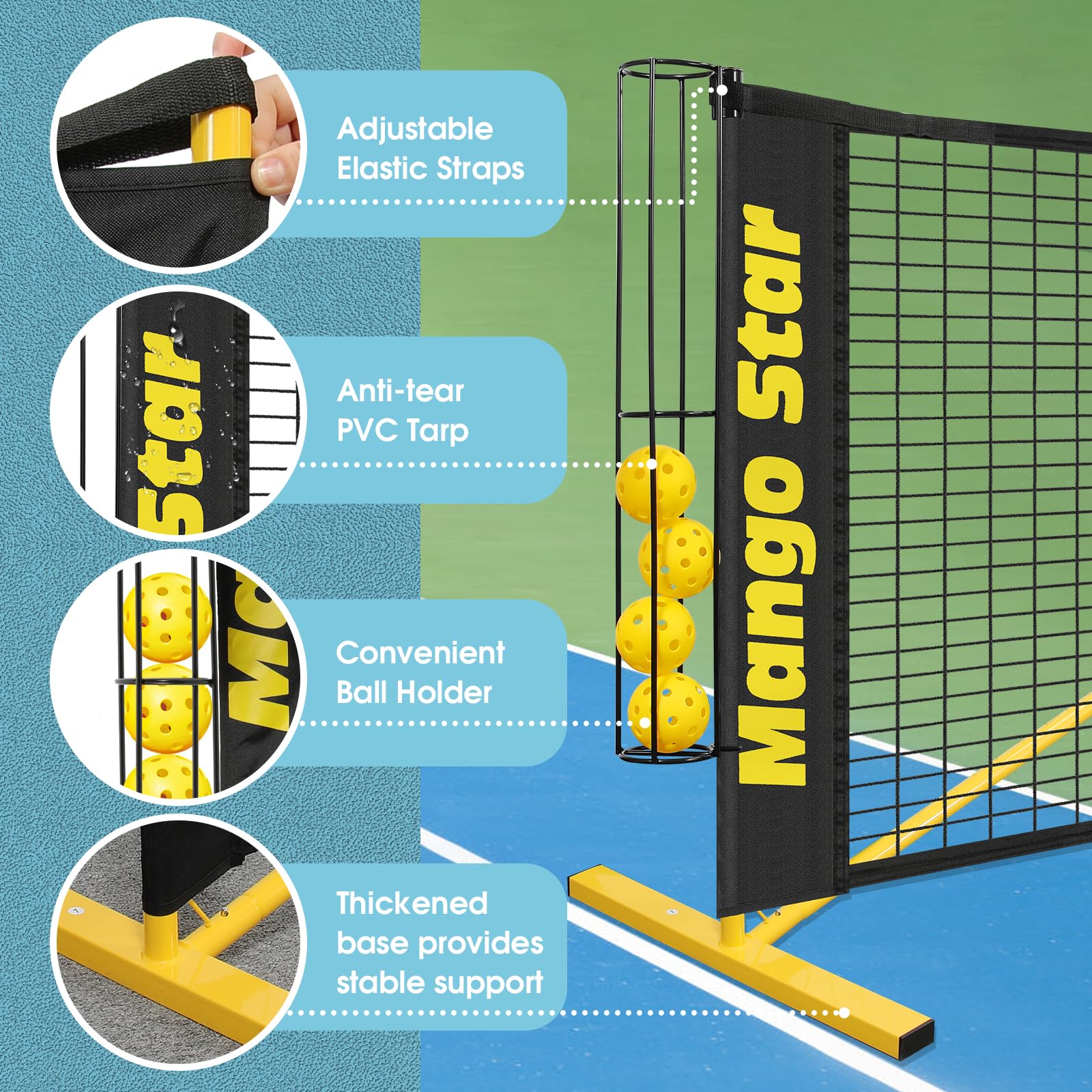 MangoStar Pickleball Net, 22FT Portable Pickleball Nets with Exclusive Ball Holder, Court Marker, 4 Pickleballs, Tape Measure, Regulation Size Pickle Ball Net for Outdoor Indoor Driveway