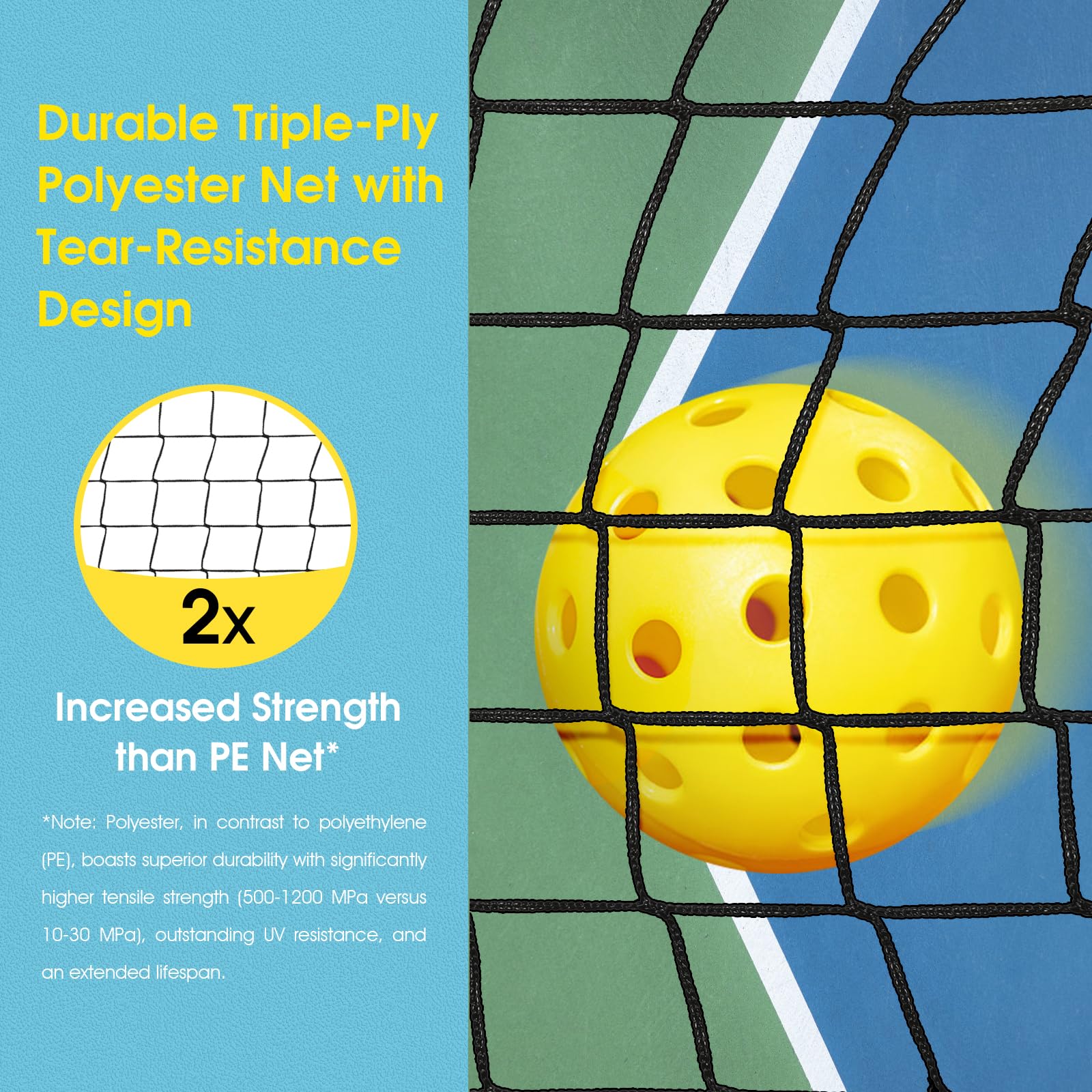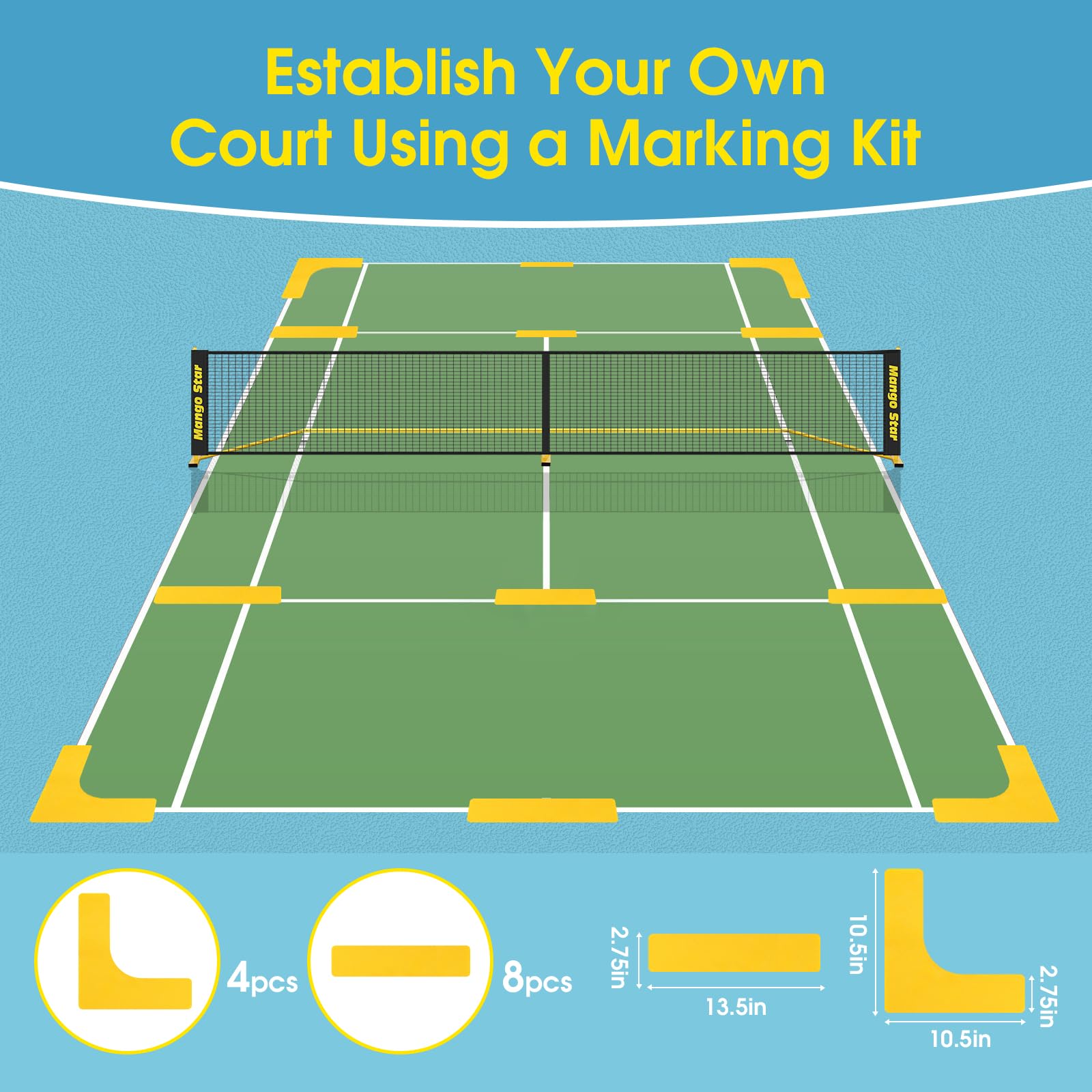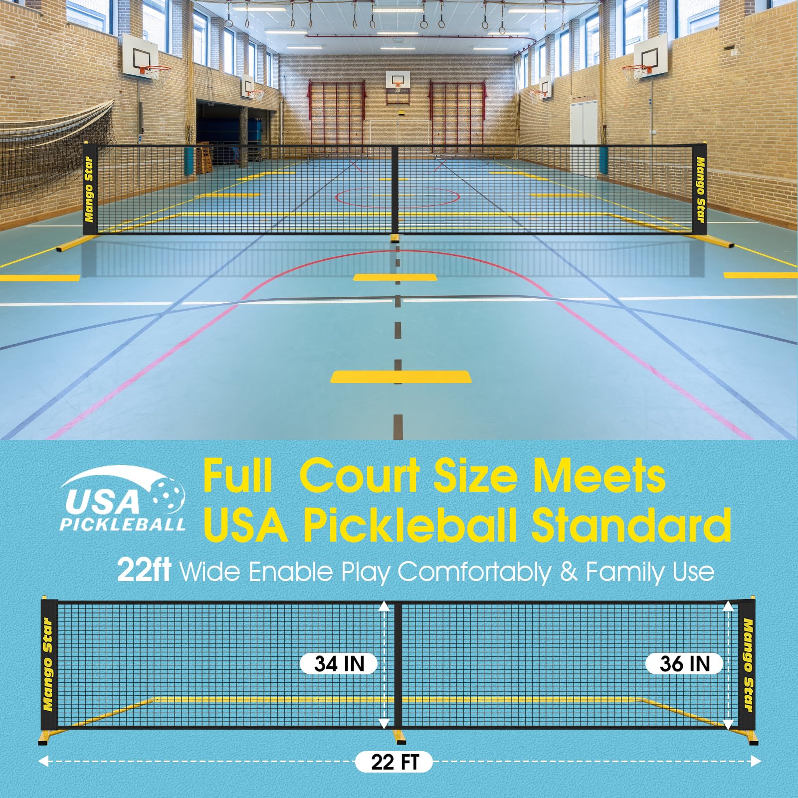 MangoStar Pickleball Net, 22FT Portable Pickleball Nets with Exclusive Ball Holder, Court Marker, 4 Pickleballs, Tape Measure, Regulation Size Pickle Ball Net for Outdoor Indoor Driveway