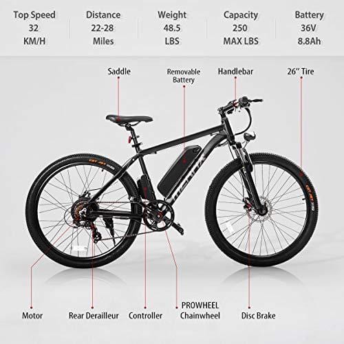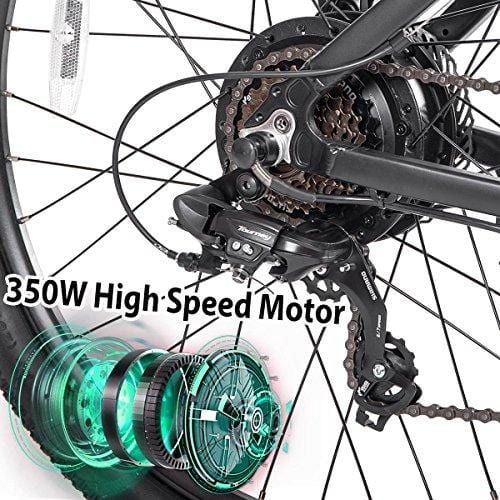 Merax 26β Aluminum Electric Mountain Bike 7 Speed E-Bike, 36V Lithium Battery 350W Electric Bicycle for Adults (Black)