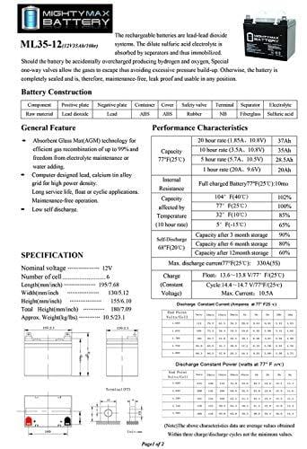 Mighty Max Battery 12V 35Ah Deep Cycle Solar Battery Also Replaces 33Ah 34Ah 36Ah - 2 Pack Brand Product