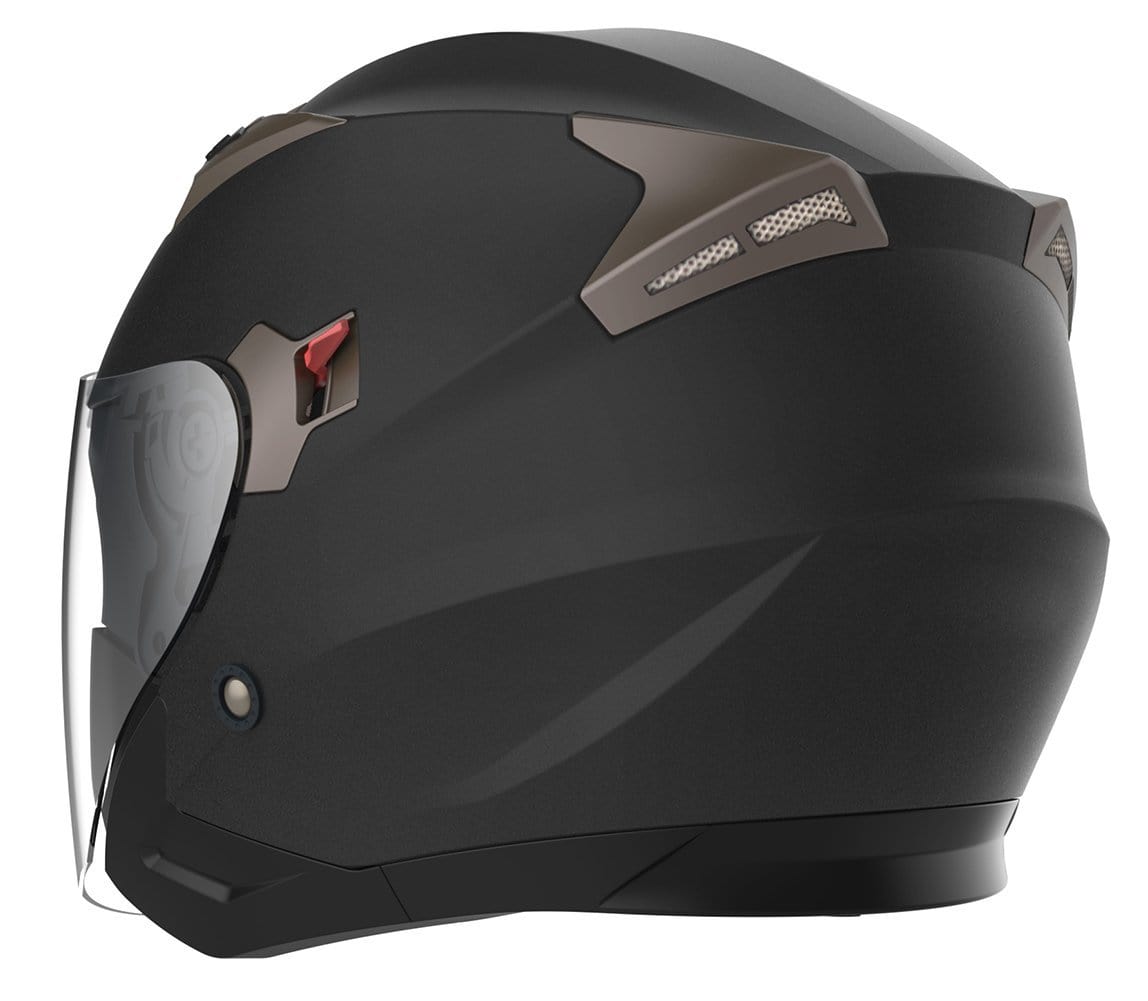 Motorcycle Open Face Helmet DOT Approved - YEMA YM-627 Motorbike Moped Jet Bobber Pilot Crash Chopper 3/4 Half Helmet with Sun Visor for Adult Men Women - Matte Black,Medium
