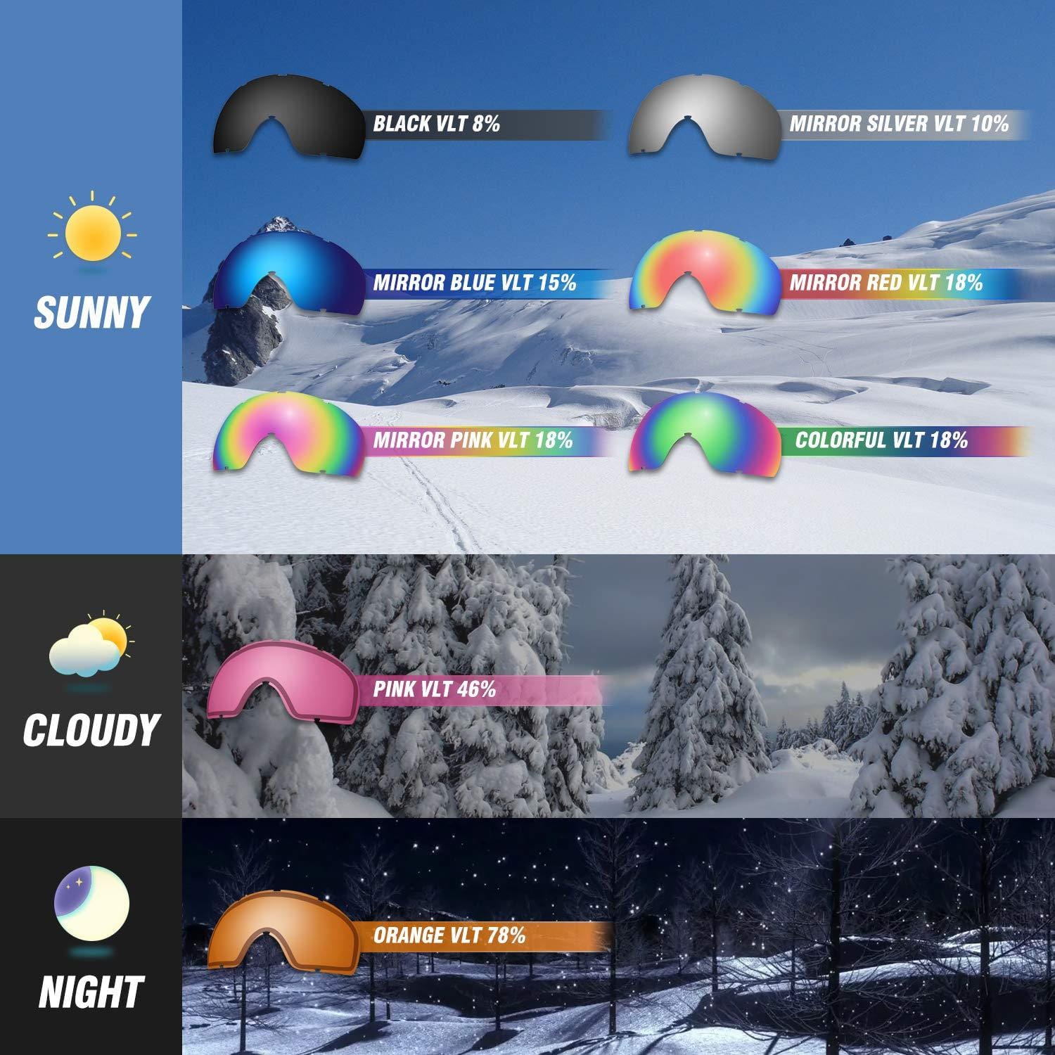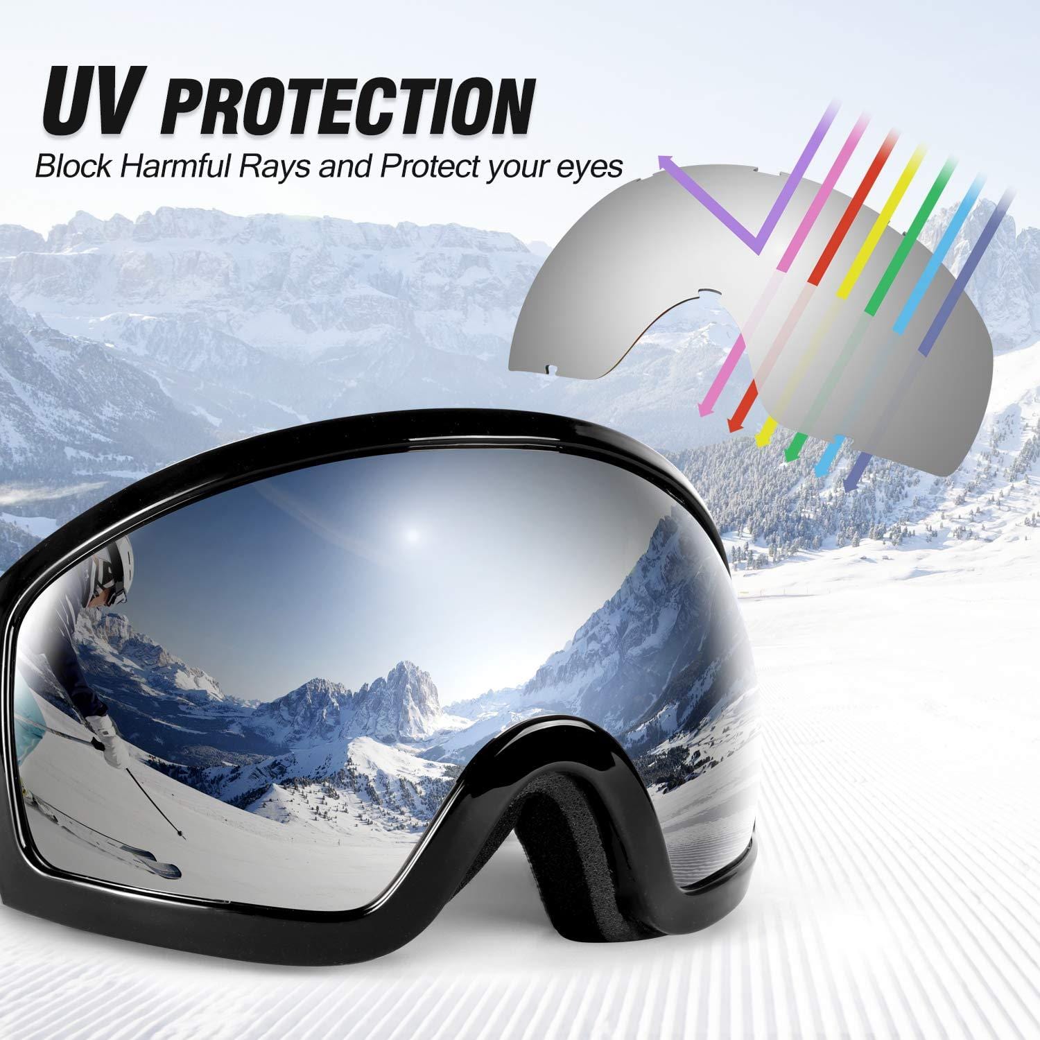 Odoland Ski Goggles - OTG Ski/Snowboard Goggles for Men, Women, Youth - Anti-Fog Double Lens, 100% UV Protection and Helmet Compatible