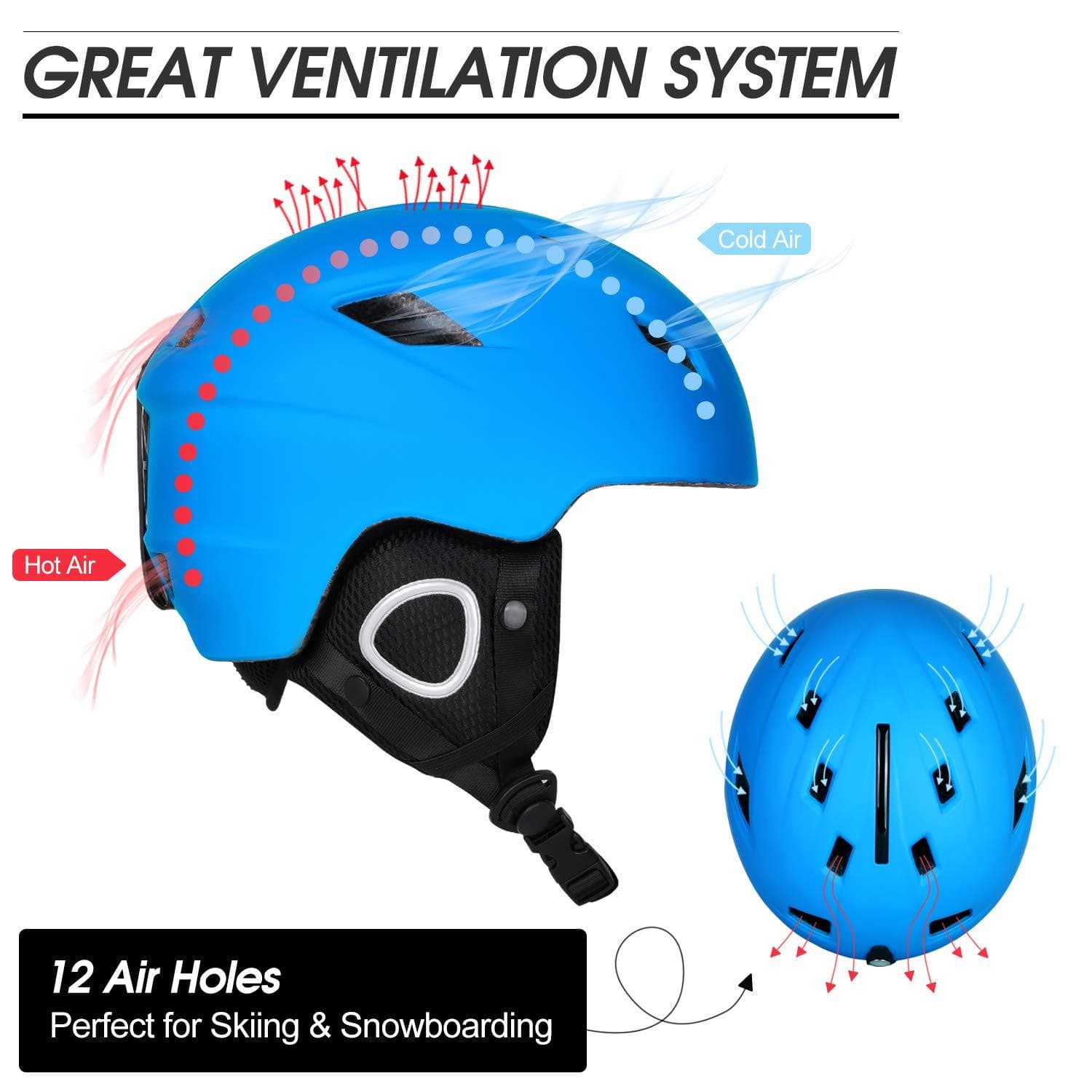 Odoland Ski Helmet with Ski Goggles, Multi-Options Snowboard Helmet and Goggles Set for Men Women Youth and Kids, ASTM Safety Certificated, Blue, Large