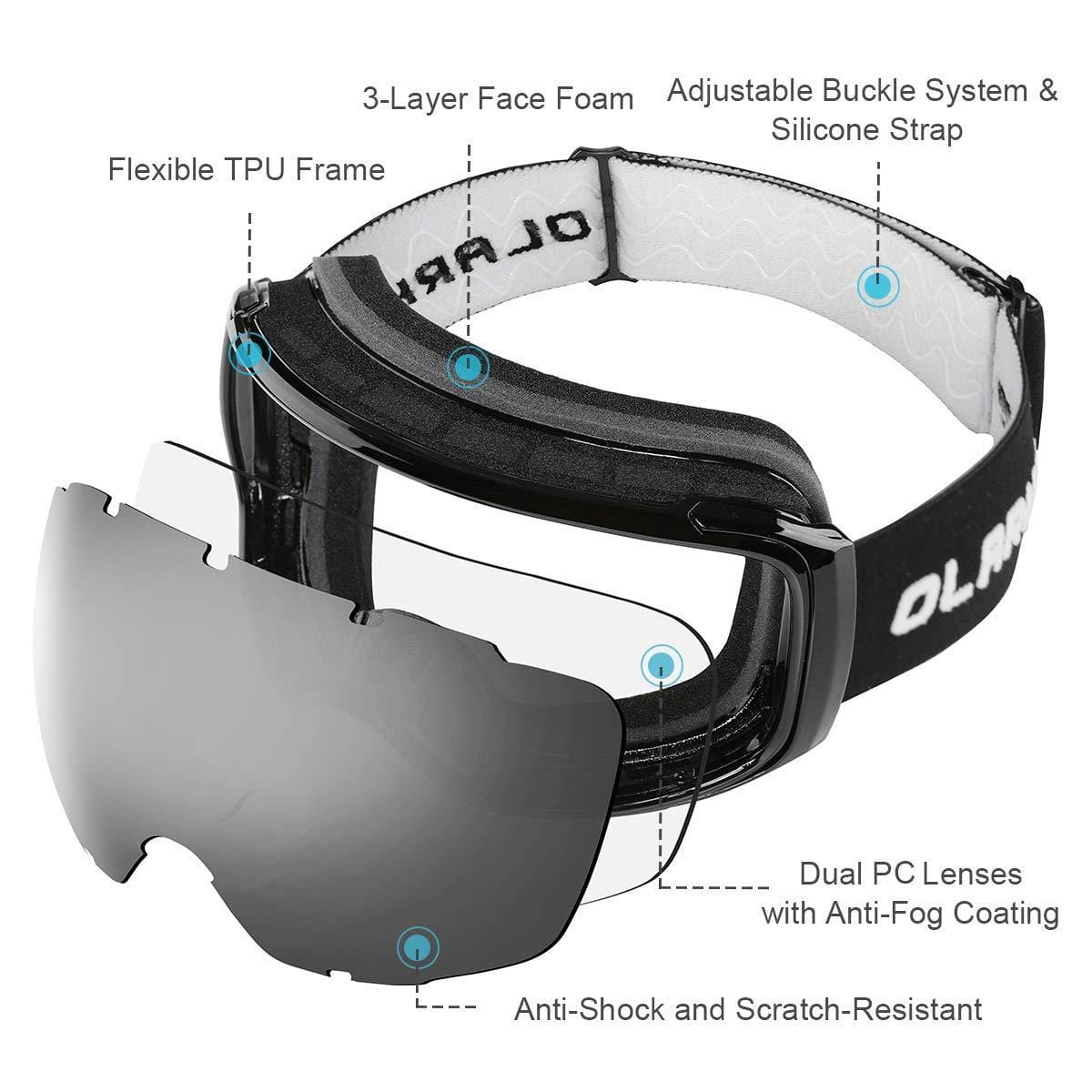 OlarHike Ski Snow Goggles for Men and Women, Anti-Fog Over Glasses Snowboard Goggles with UV Protection, Windproof Dual Lens Goggles for Skiing & Skating & Outdoor Sport, UV400