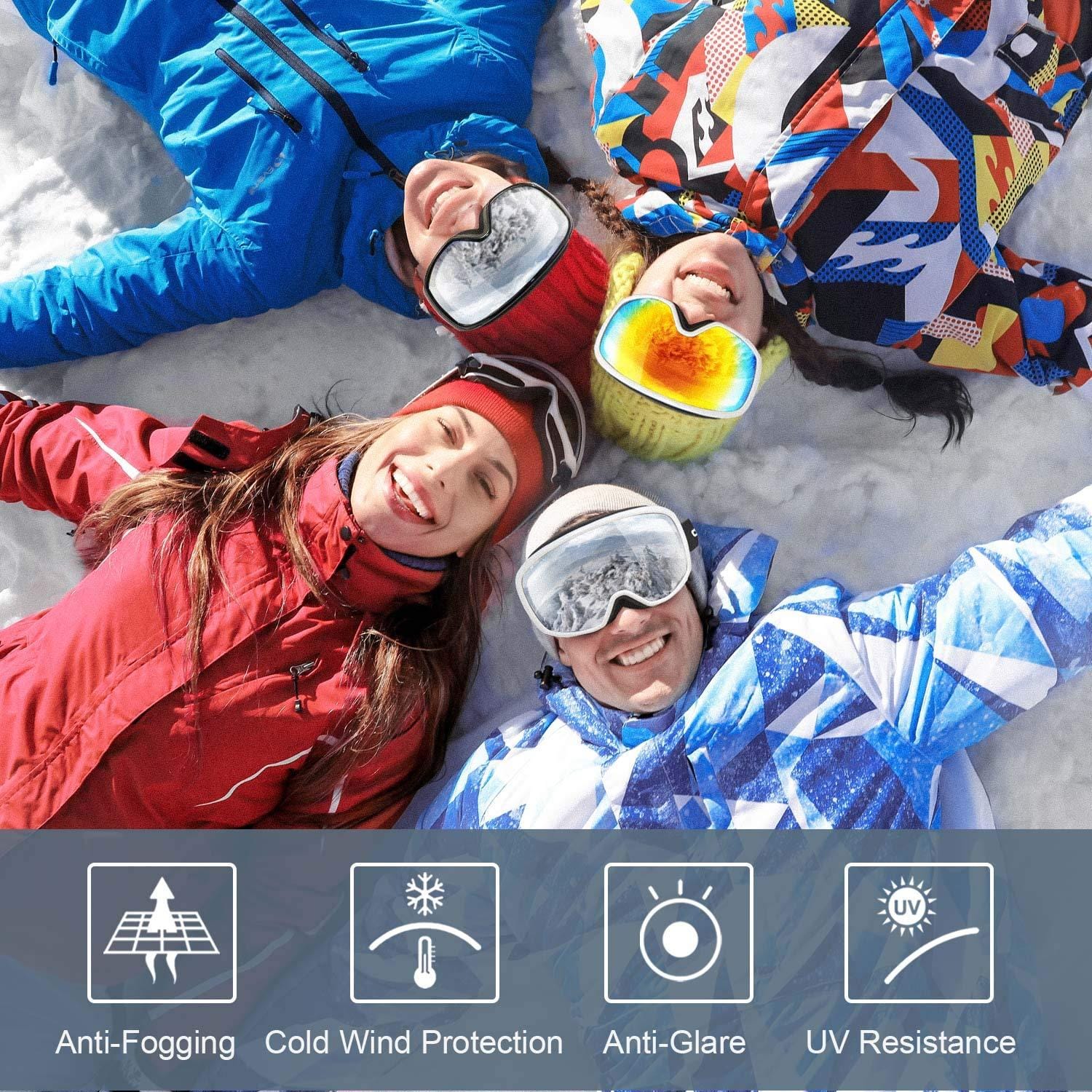 • TRUSTWORTHY QUALITY--We strive to bring you quality ski goggles for skiing, sledding, snowboarding or other daily uses with effortless performance & unlimited style. Our ski goggles make great gifts and keep you looking cool in the snow!